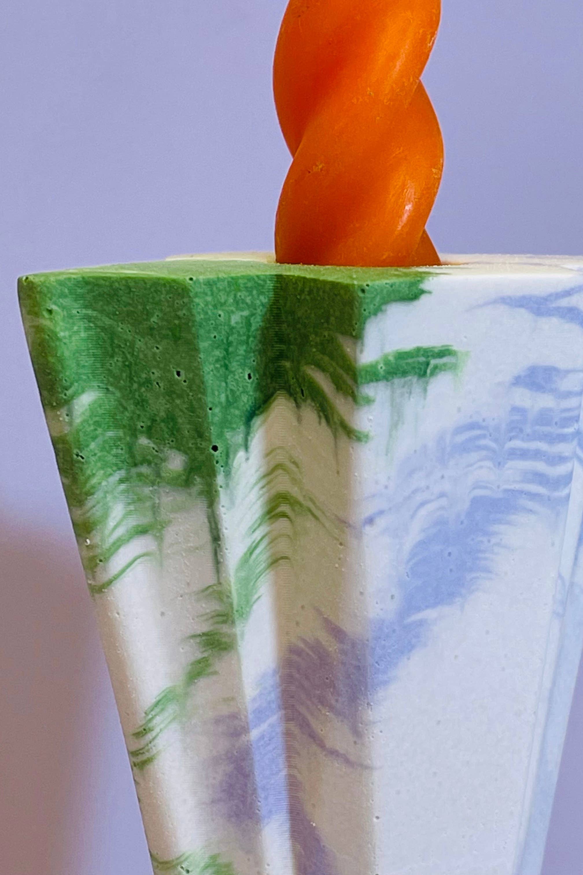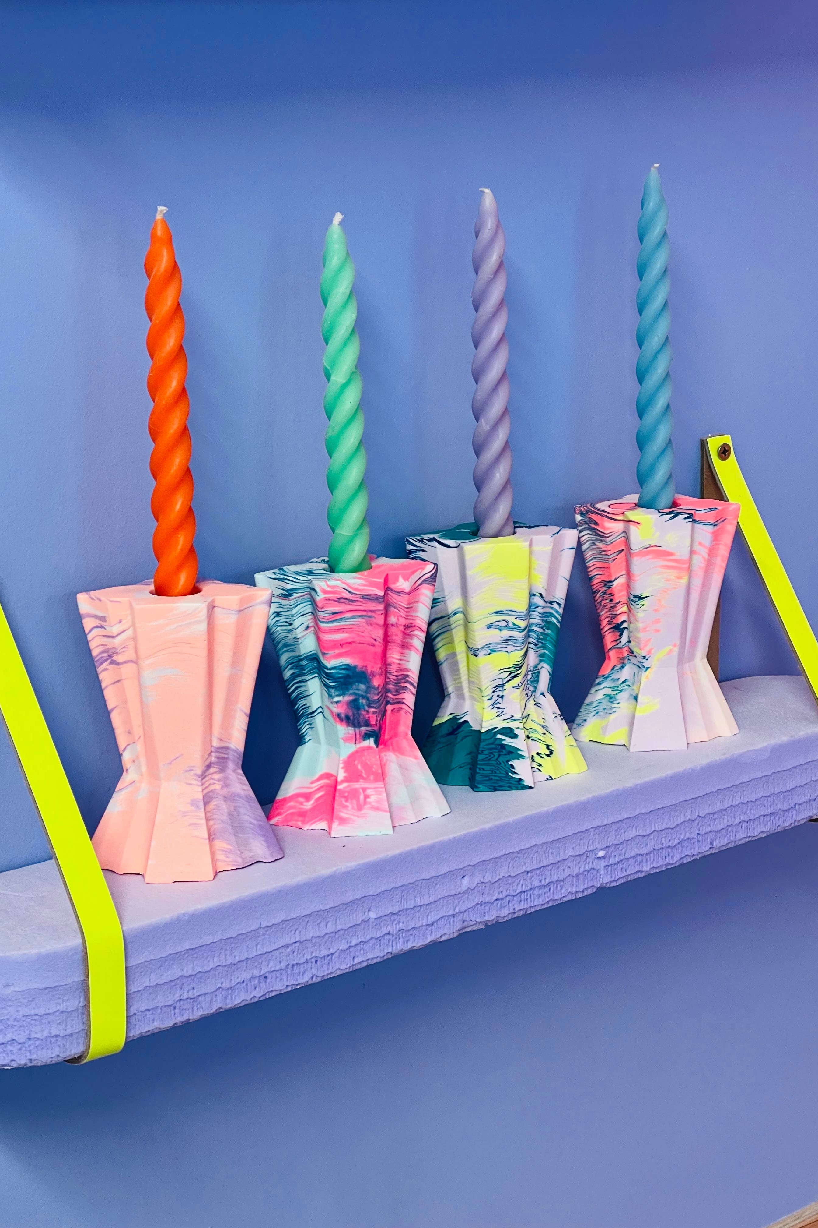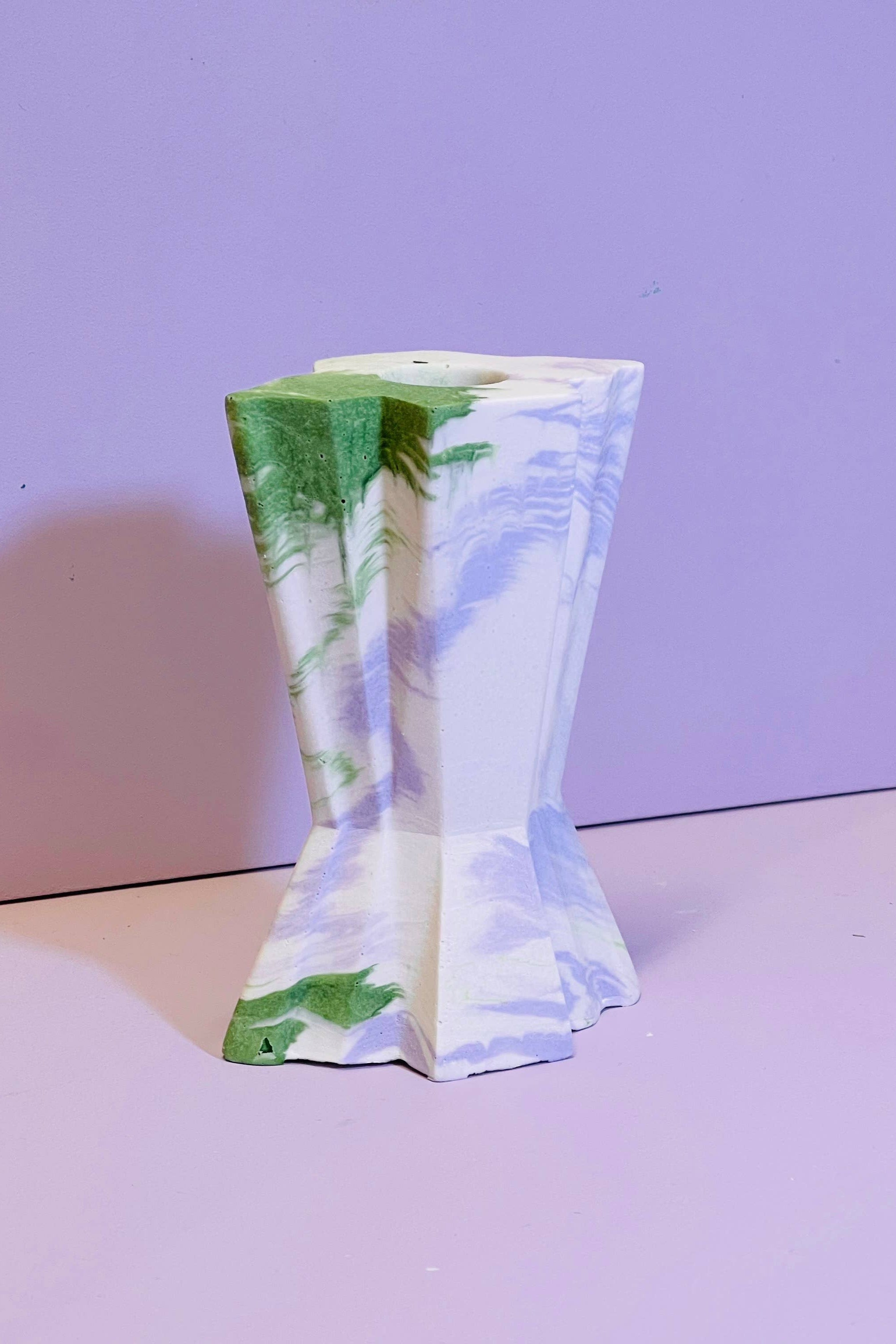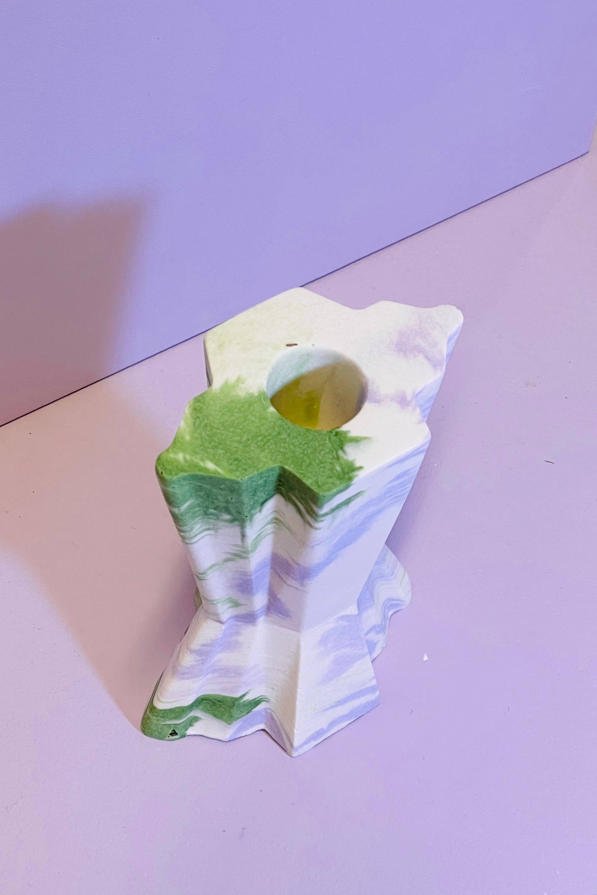 Dieser schöne Kerzenständer aus Jesmonit von Misshandled in lila und olivegrün peppt jeden Raum auf. Handgefertigt aus umweltfreundlichem Jesmonit-Mineralstein - Versiegelt mit einer ECO-Steinversiegelung auf Wasserbasis - Nur für den Gebrauch in Innenräumen.