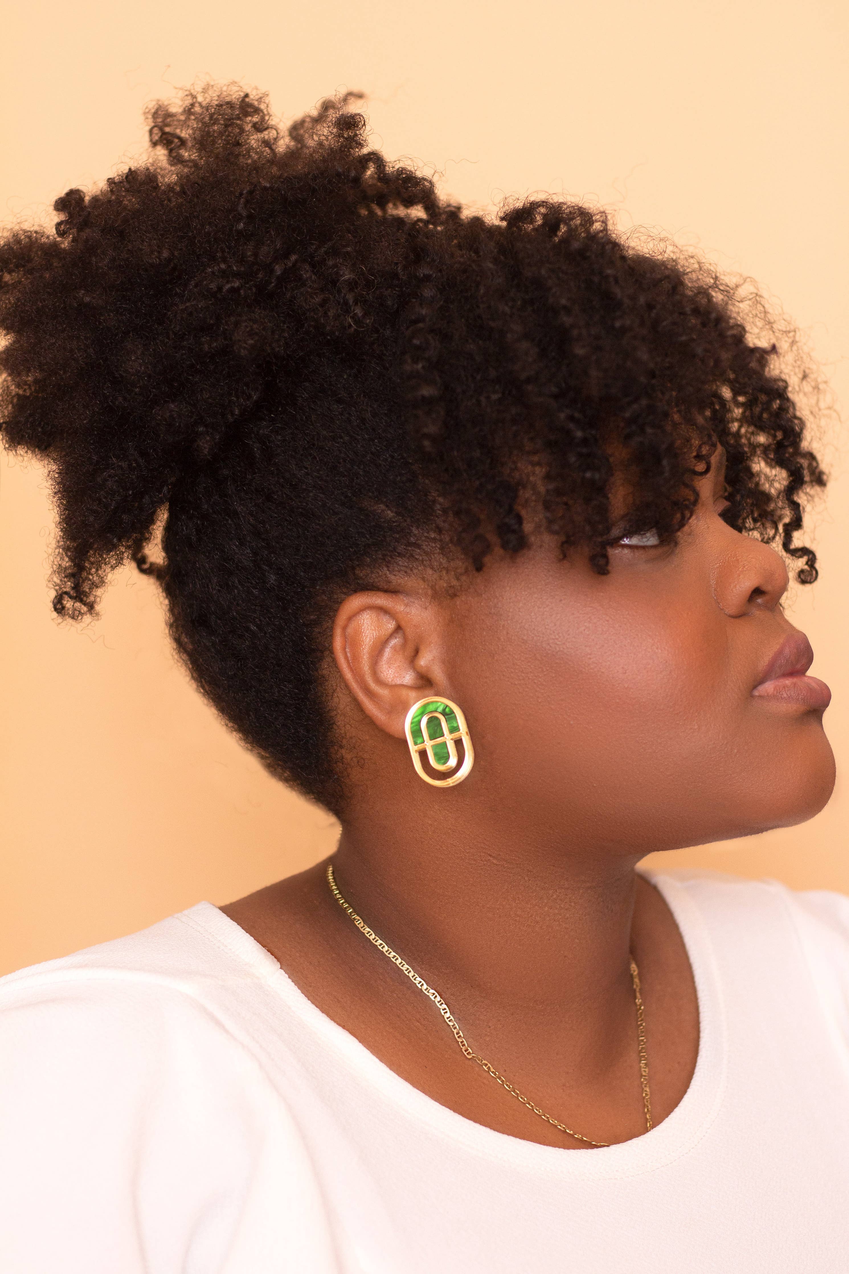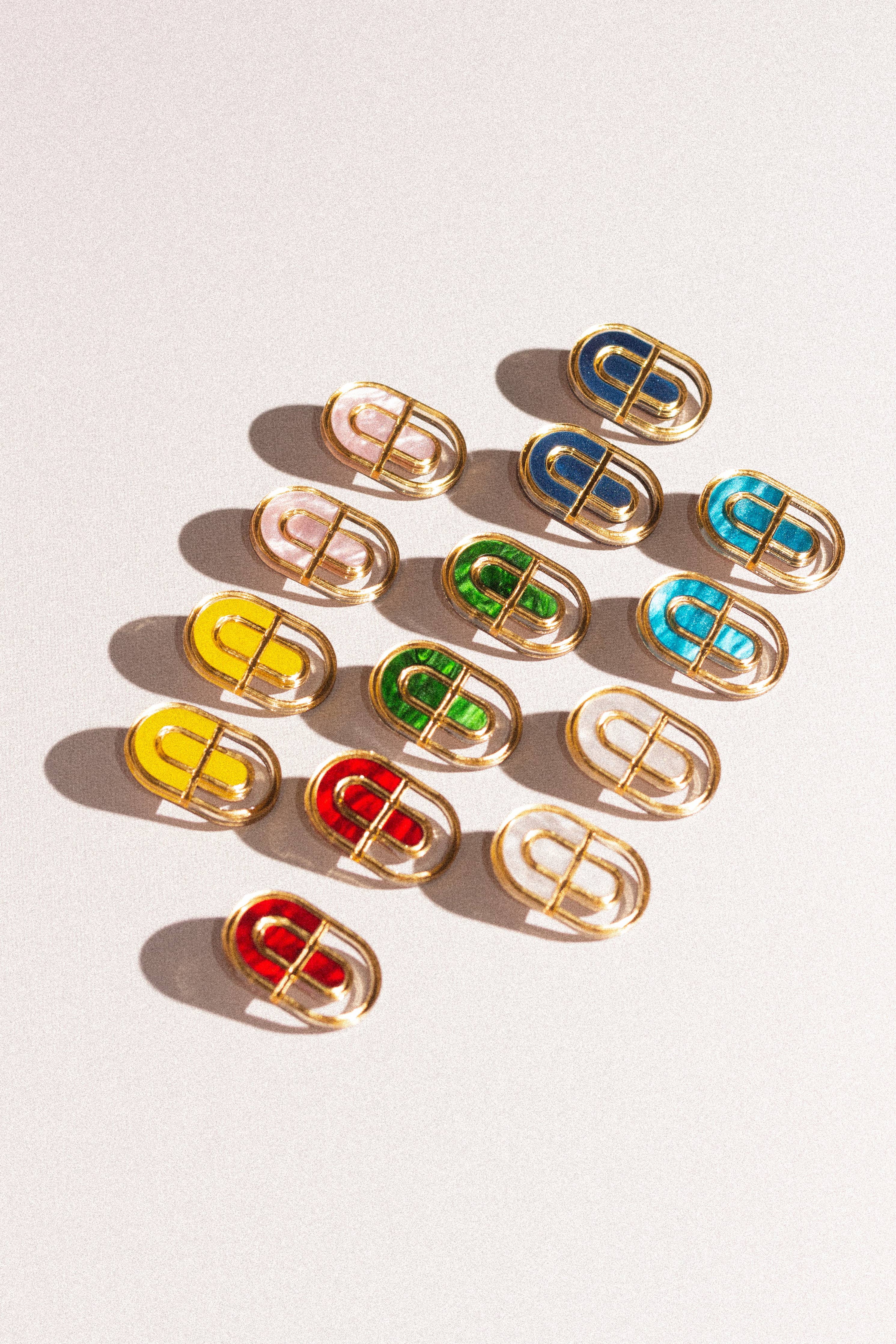 Die Devin Ohrstecker von Moon-Seed sind richtige Hingucker. Die geometrischen Statement-Ohrstecker sind aus robustem, leichtem Acryl geschnitten. Aufgrund der Handarbeit dieser Artikel können Muster und Farben von Paar zu Paar leicht variieren.