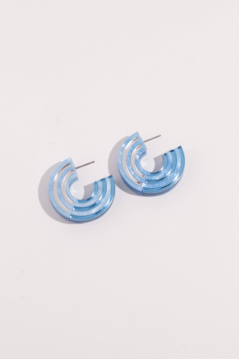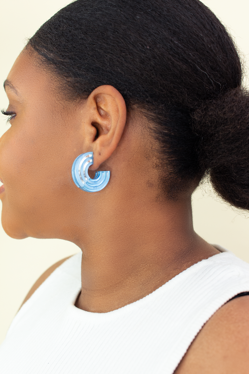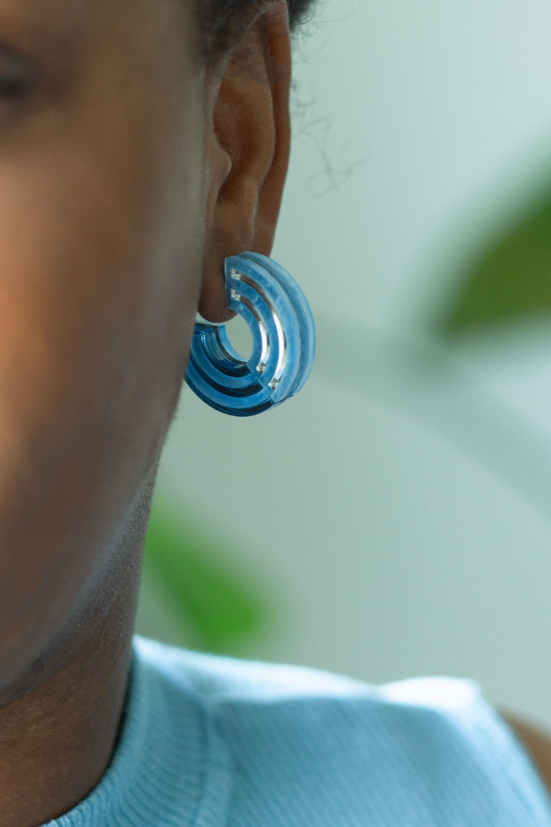 Statement Hoop-Ohrringe von Moon-Seed in blauer Farbe.