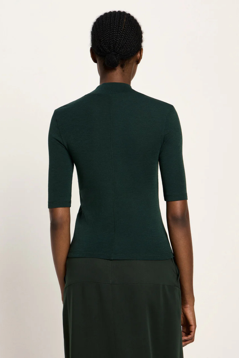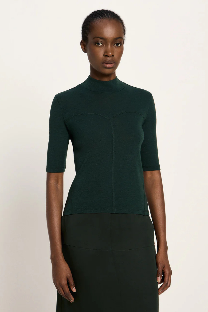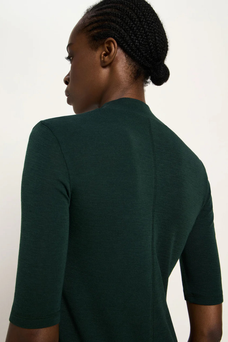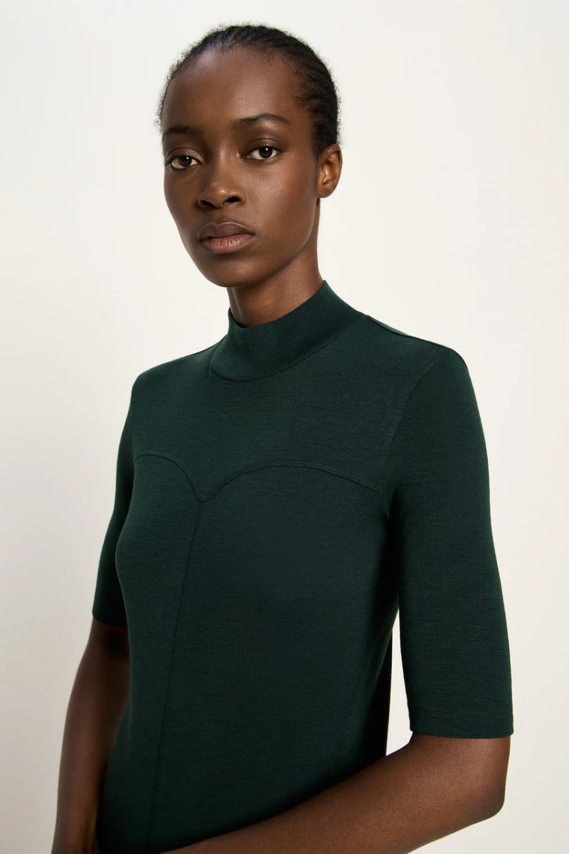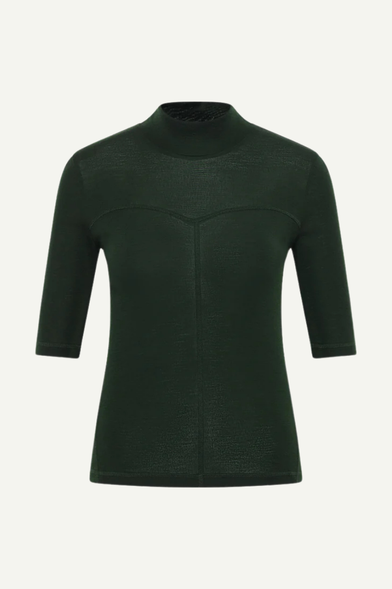 Dieses Halbarmshirt von LANIUS aus reiner Bio-Merinowolle verbindet feminine Eleganz mit funktionaler Vielseitigkeit. Mit seinem temperaturausgleichenden Material und der besonders feinen, weichen Oberfläche hält es angenehm warm und fühlt sich zugleich leicht an. Der schmale Stehkragen und die präzise gesetzten Teilungsnähte betonen die klare, moderne Linie – perfekt für stilbewusste Trägerinnen. Die halblangen Ärmel machen es zum vielseitigen Begleiter für Lagen-Looks unter Blazer oder Mantel oder als selbstbewusstes Solo-Piece.