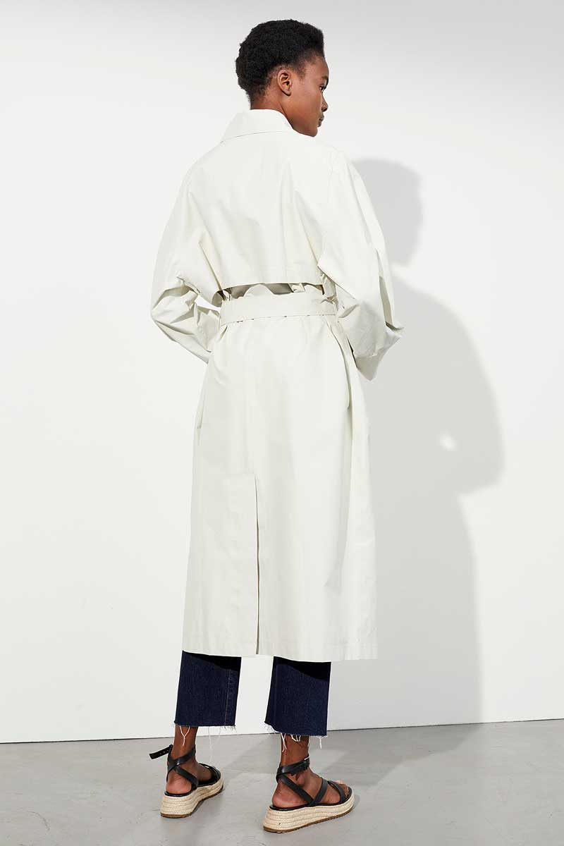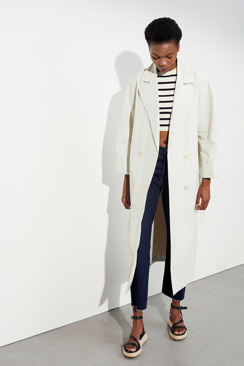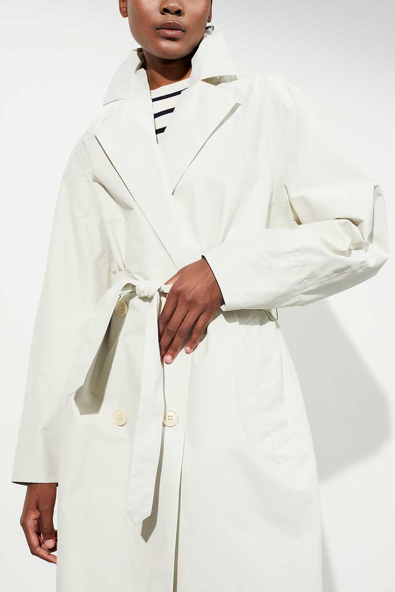 Der lässige weil locker geschnittene Doppelreiher erinnert an Paris der 60’er Jahre. Leicht und blusig wirkt das Gemisch aus Biobaumwolle und Nylon. Mit einer Membran und getapten Nähten ausgestattet, bietet der Mantel guten Wetterschutz.