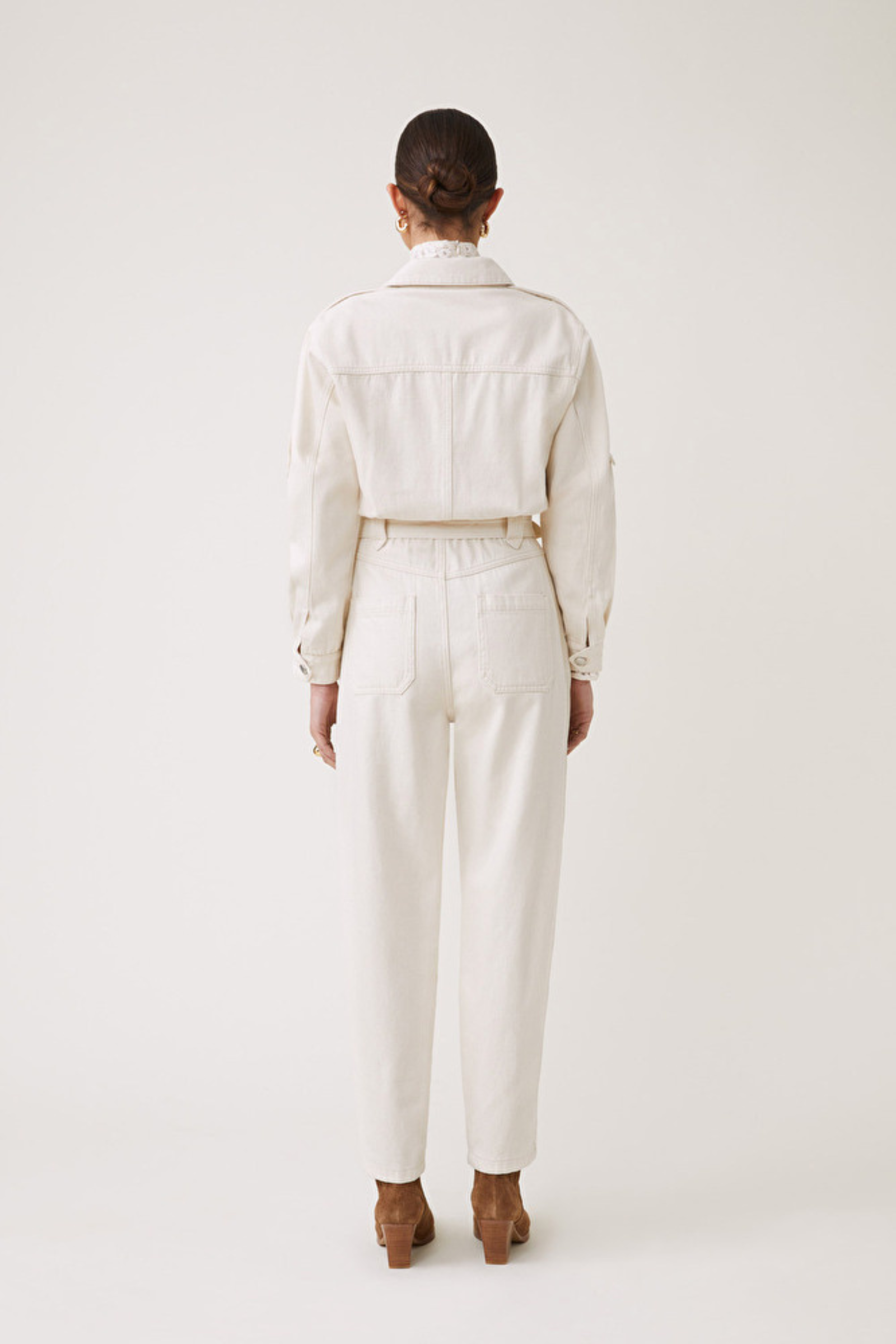 Das Jumpsuit Tango Blanc Casse ist ein echtes Must-Have. Der off-white Denim-Stoff und der abnehmbare Ton-in-Ton-Gürtel verleihen dem Einteiler einen trendigen Look. Mit dem praktischen Reißverschluss und den vier Taschen ist das Jumpsuit nicht nur stylish, sondern auch funktional. Perfekt für einen lässigen und dennoch schicken Look.