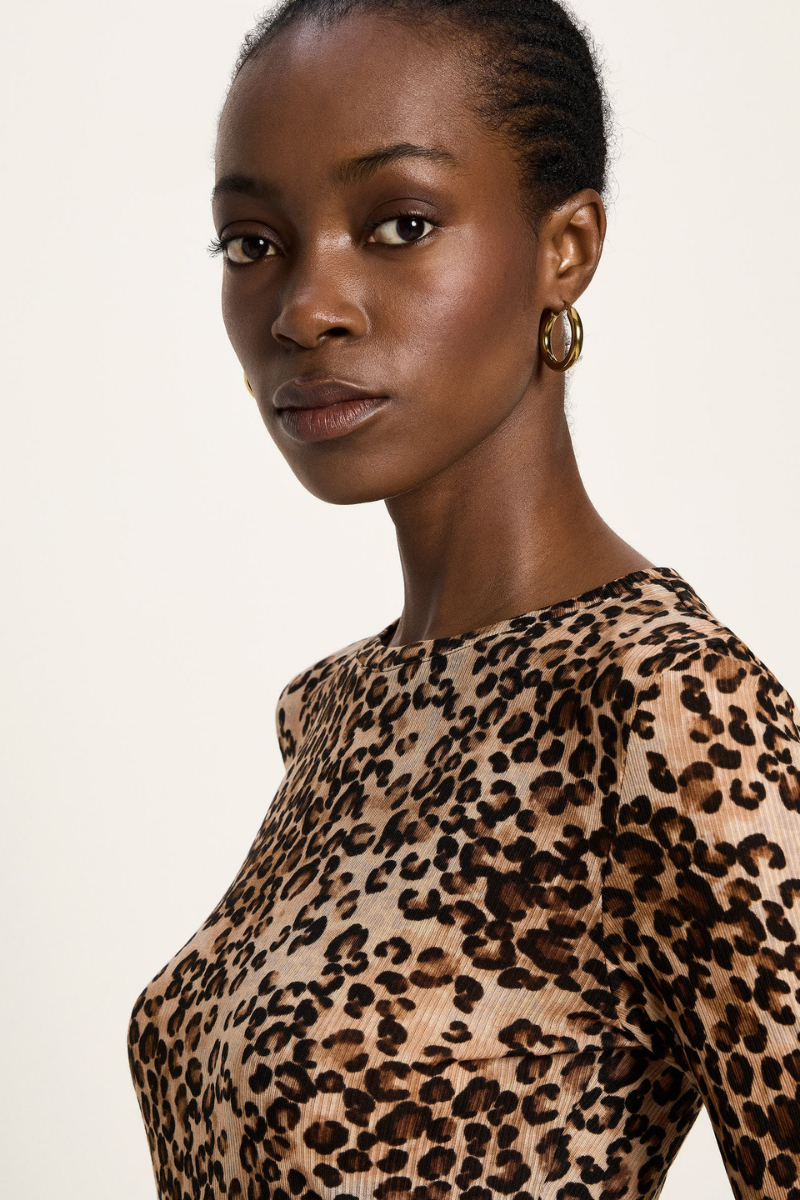 Das Longsleeve Print Leo von LANIUS aus TENCEL™ Lyocell überzeugt mit seiner außergewöhnlich weichen Textur, hoher Atmungsaktivität und einem edlen, dezenten Glanz. Der körpernahe Schnitt betont die Silhouette und macht es zum perfekten Layering-Piece. Vielseitig kombinierbar – ob unter Strick, zum Blazer oder solo getragen – ist dieses Langarm-Shirt ein nachhaltiges Must-have für Ihre Garderobe.