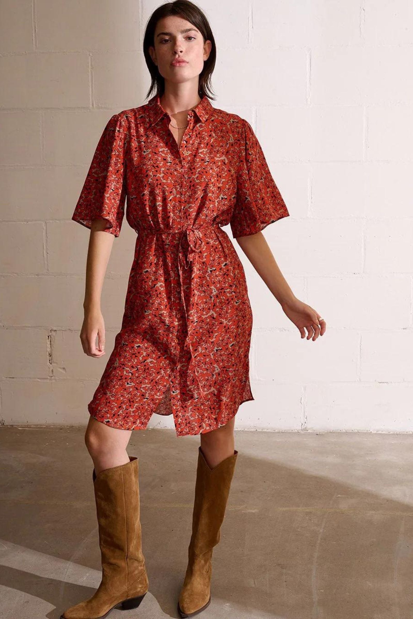 Mit dem Nasma-Kleid kannst du den verspielten Charme des Sommers voll auskosten. Der reguläre Schnitt bietet Komfort, der Gürtel betont die Taille. Der Knopfverschluss verleiht eine stilvolle Note, während die luftigen, weiten Ärmel dem Look eine leichte Brise verleihen.