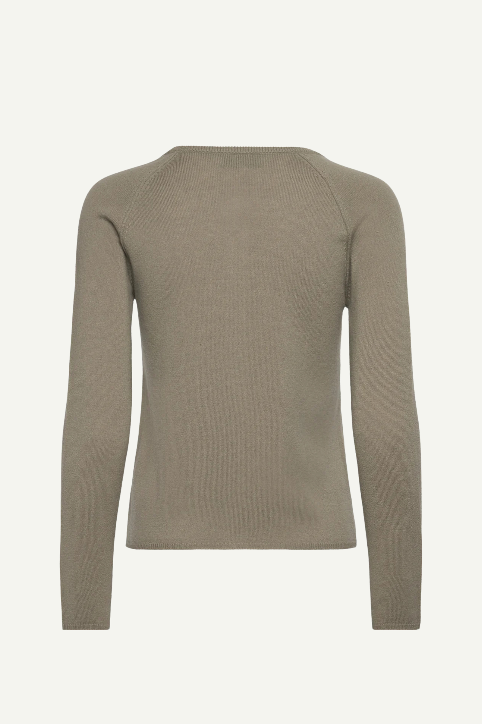 Diese wunderschöne Strickjacke ist ein echtes Must-Have für jede Garderobe! Die runde Halslinie und die Raglanärmel verleihen ihr einen lässigen und dennoch eleganten Look. Mit den perlmuttfarbenen Knöpfen auf der Vorderseite wird sie zum Blickfang. Dank der Mischung aus Kaschmir und Wolle ist sie besonders weich und angenehm zu tragen. Perfekt für jeden Anlass!
