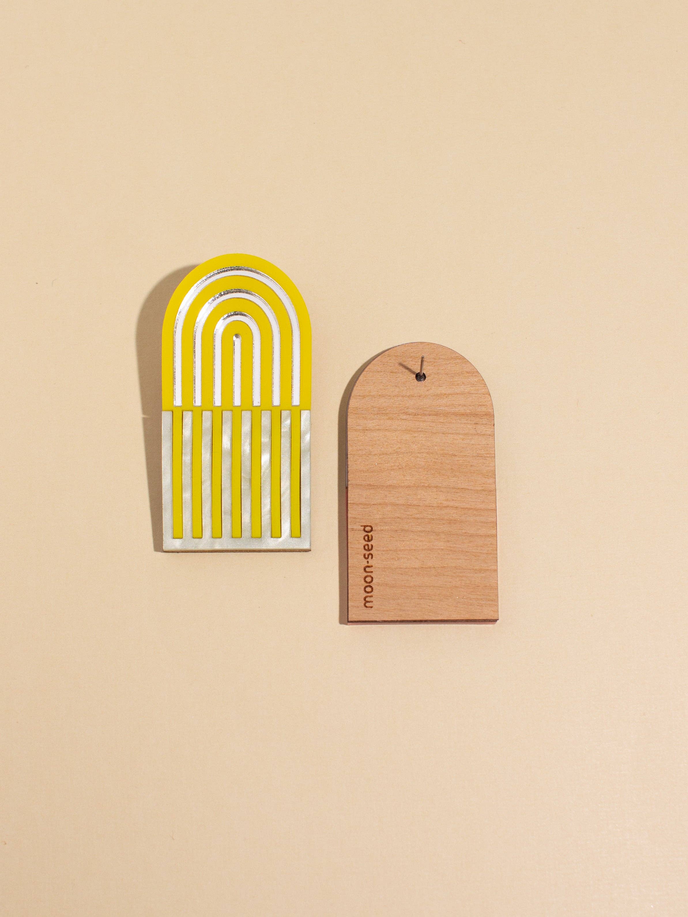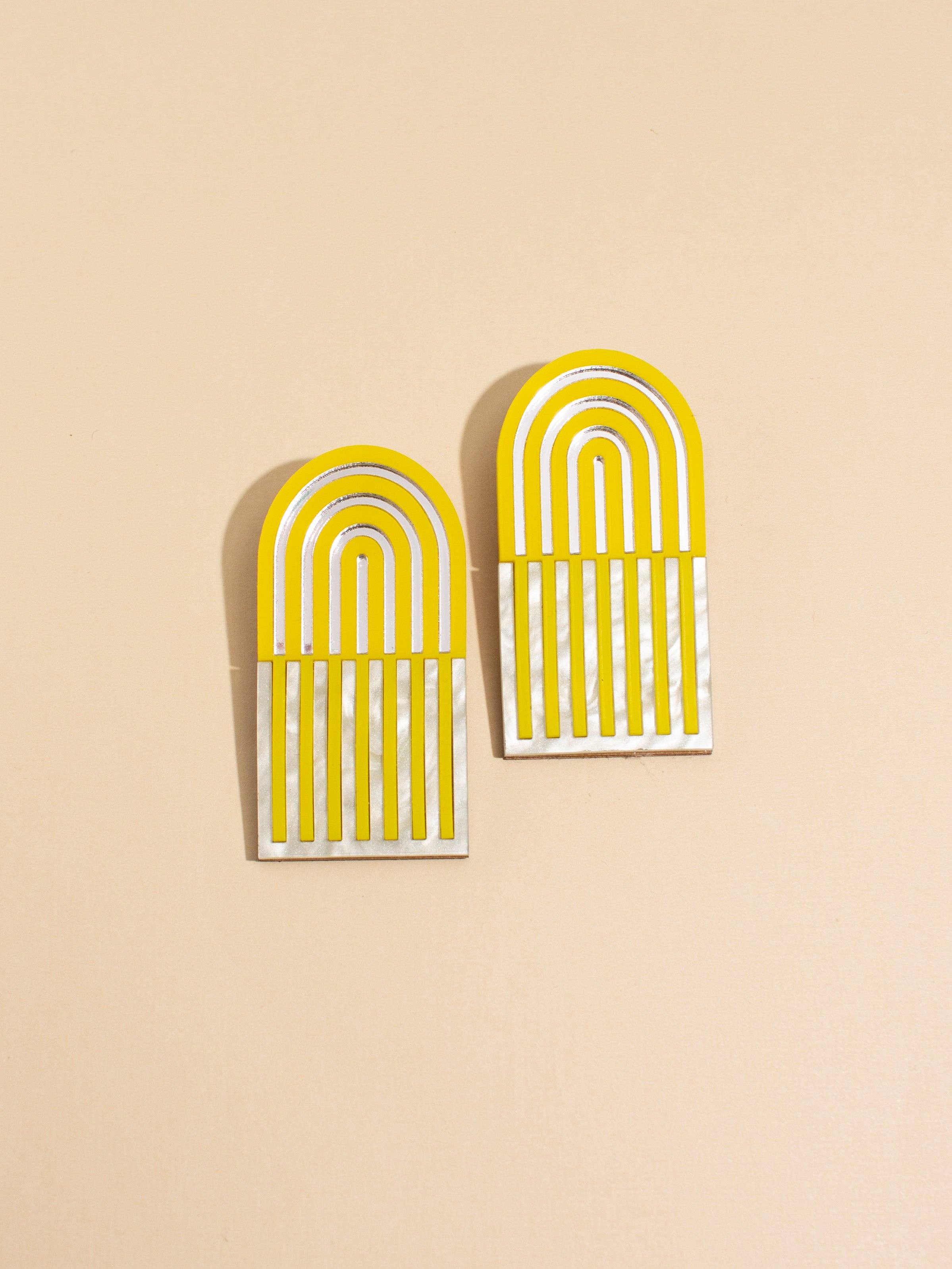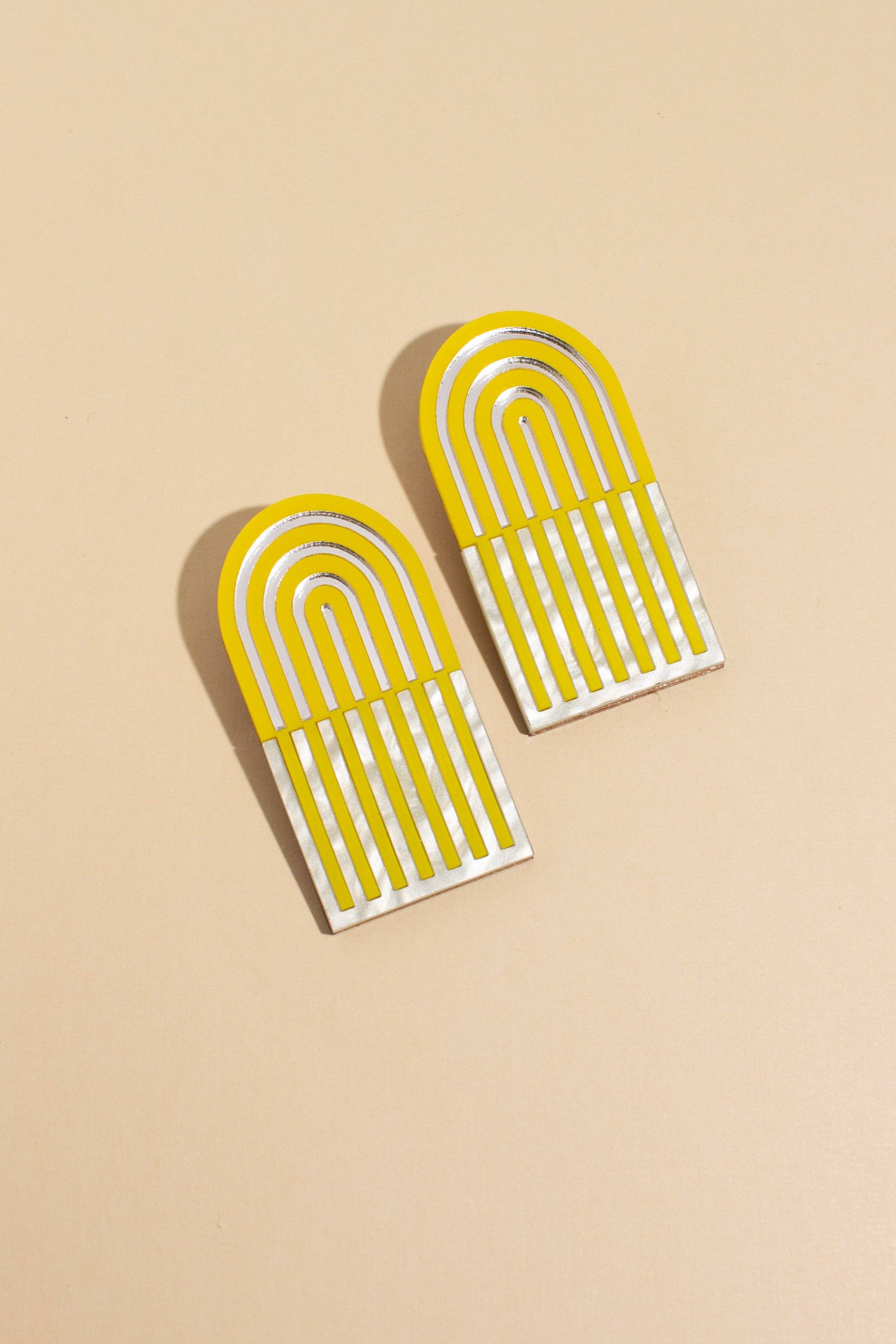 Die Anya Statement-Ohrringe von Moon-Seed aus Acryl sind die perfekte Ergänzung für jedes Outfit. Mit einer Größe von ungefähr 3,3 cm Breite x 6,6 cm Länge verleihen sie jedem Look einen Hauch von Farbe und Eleganz.