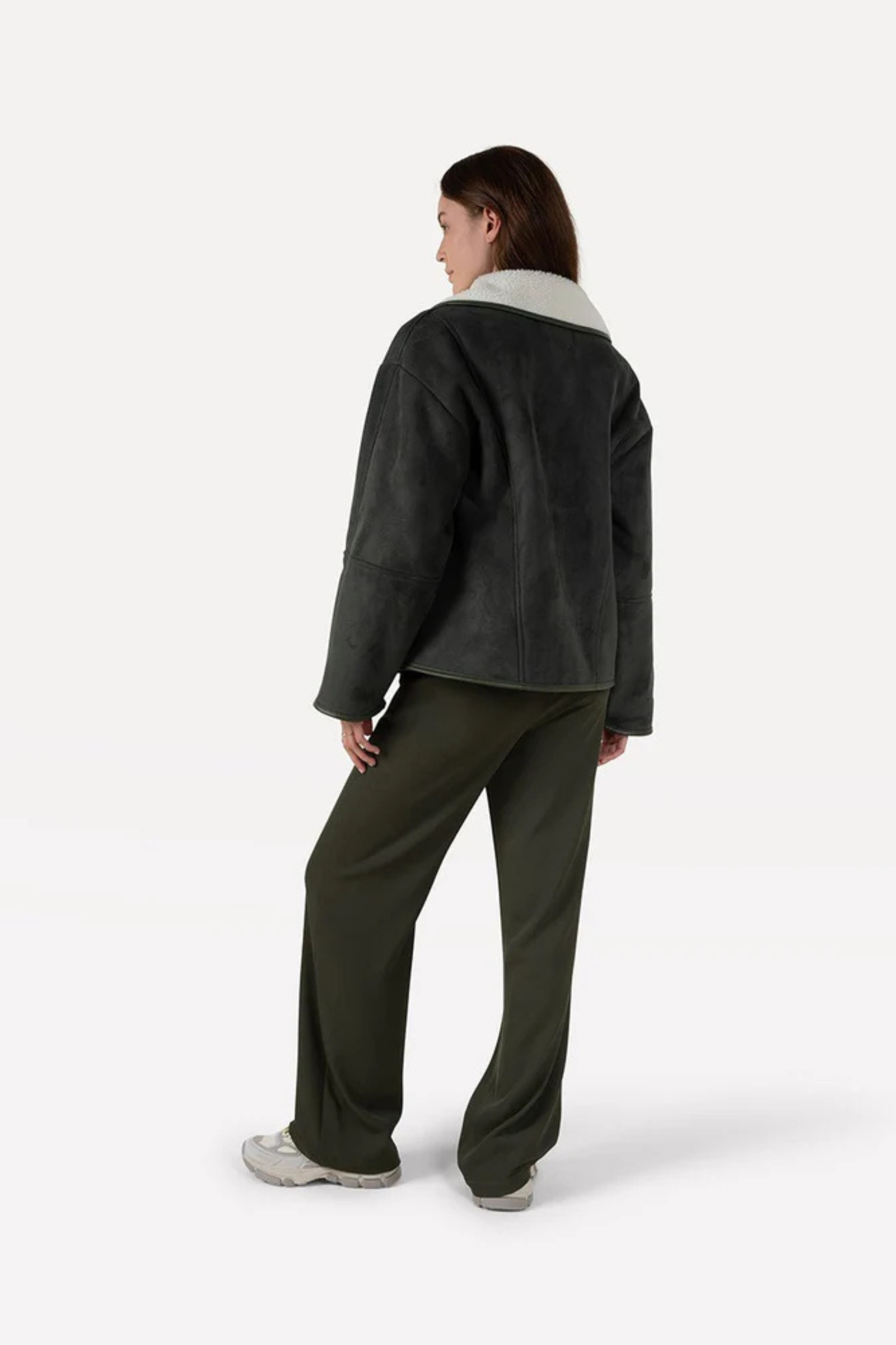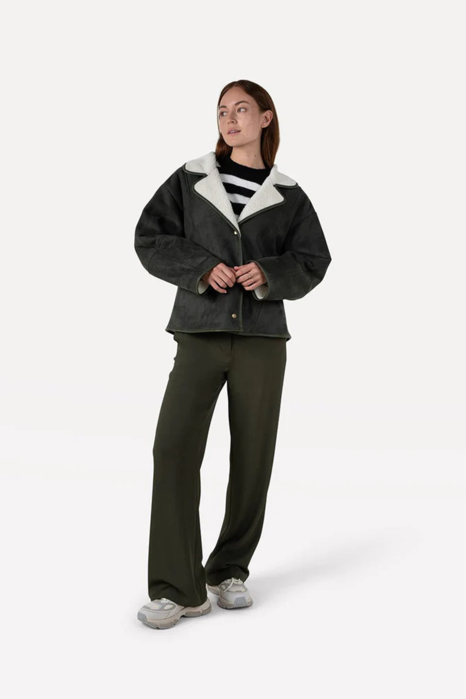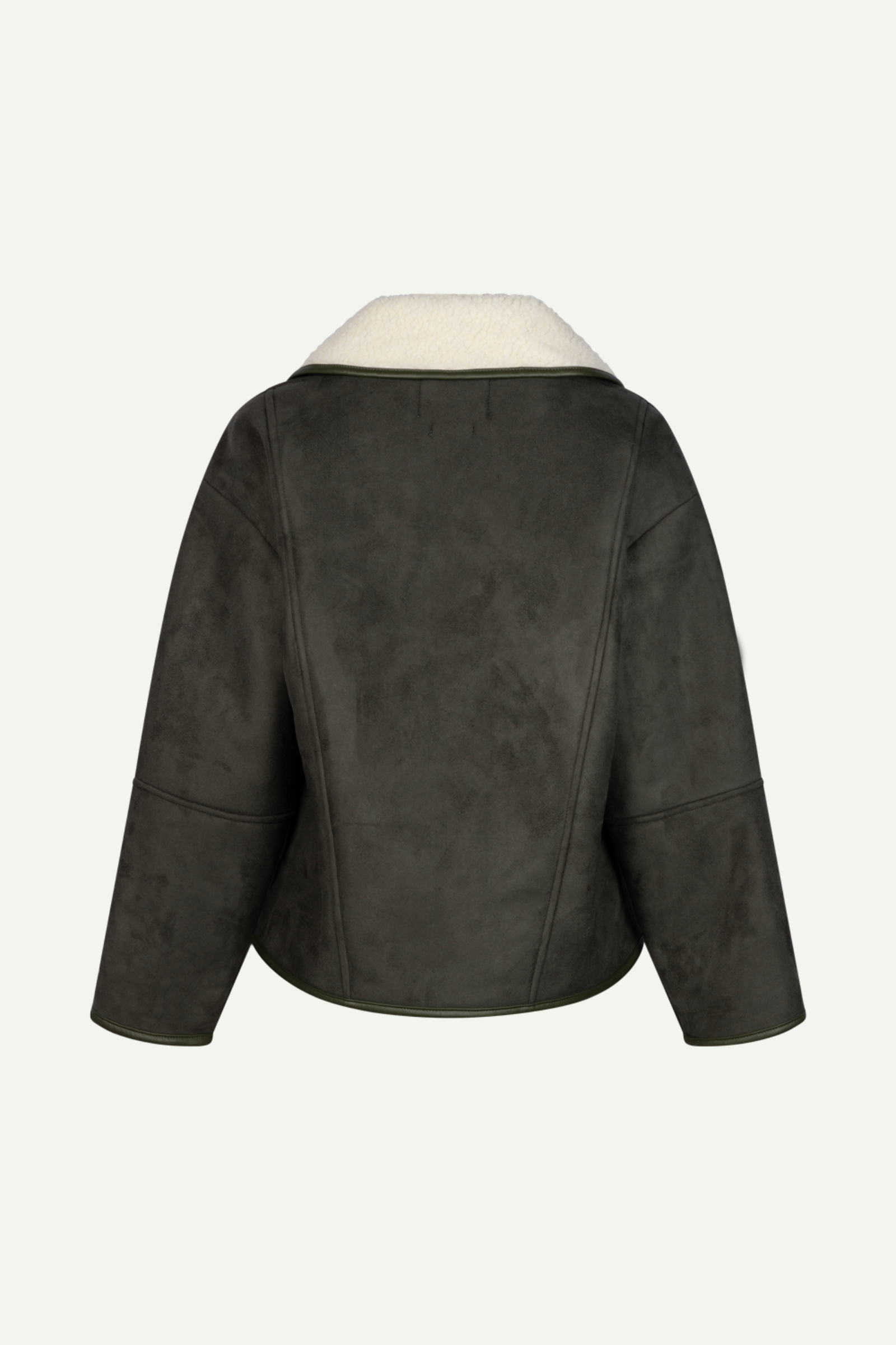 Kurze, warme Jacke in Lammfell-Optik (vegan) und warmer Fütterung. Lockere Passform mit Kragen und Druck-Knöpfen