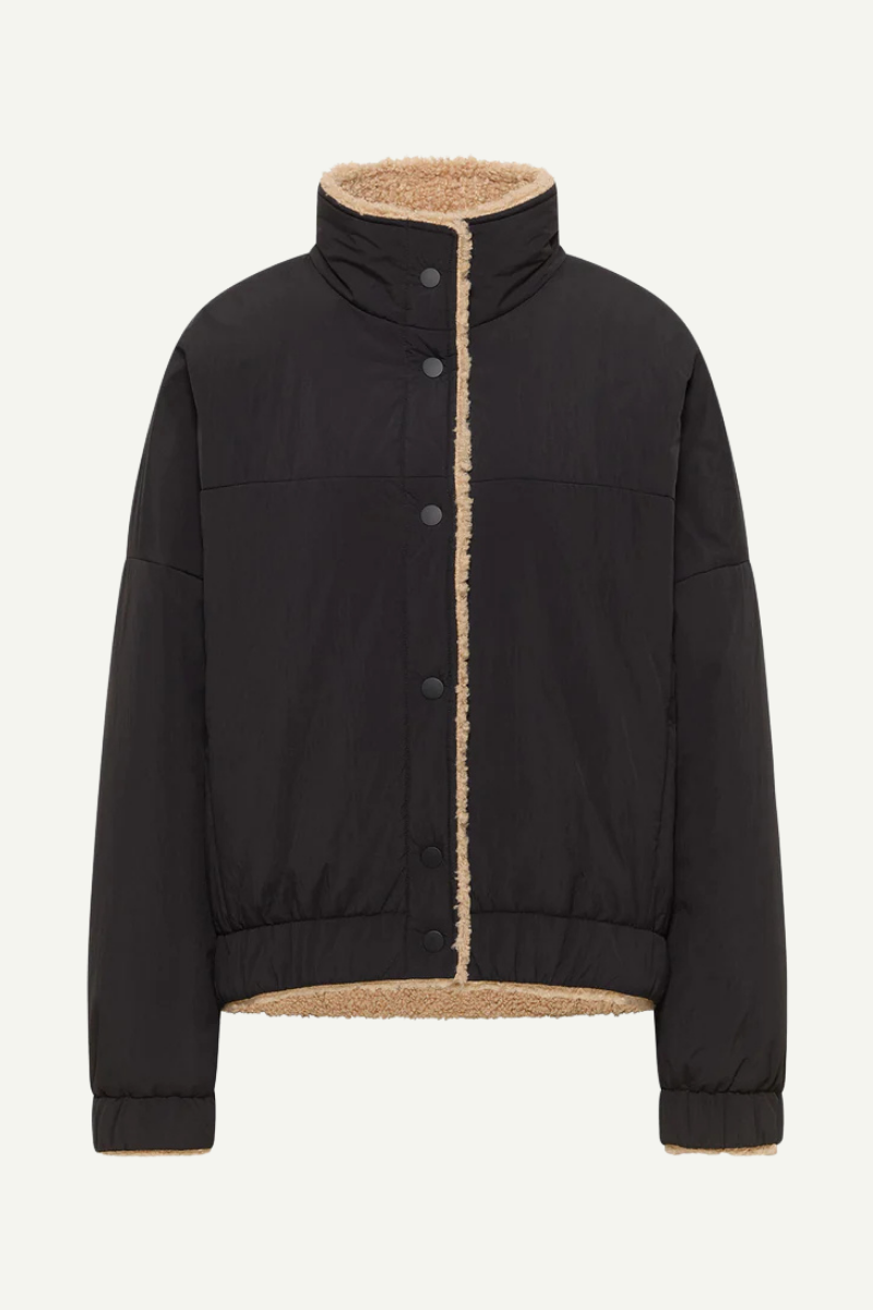 Diese wendbare Jacke von LANIUS kombiniert nachhaltiges Design mit praktischem Nutzen. Hergestellt aus recyceltem Polyamid, schützt sie zuverlässig vor Nässe und spendet angenehme Wärme bei geringem Gewicht. Auf der einen Seite überzeugt sie mit einer glatten, gesteppter Optik, auf der anderen mit weichem Teddy-Futter – so passt sie sich jedem Stil an. Der Stehkragen, elastische Bündchen und der Reißverschluss garantieren eine bequeme Passform und optimale Bewegungsfreiheit. Ein vielseitiger Begleiter, der Übergangszeiten modisch und funktional meistert.
