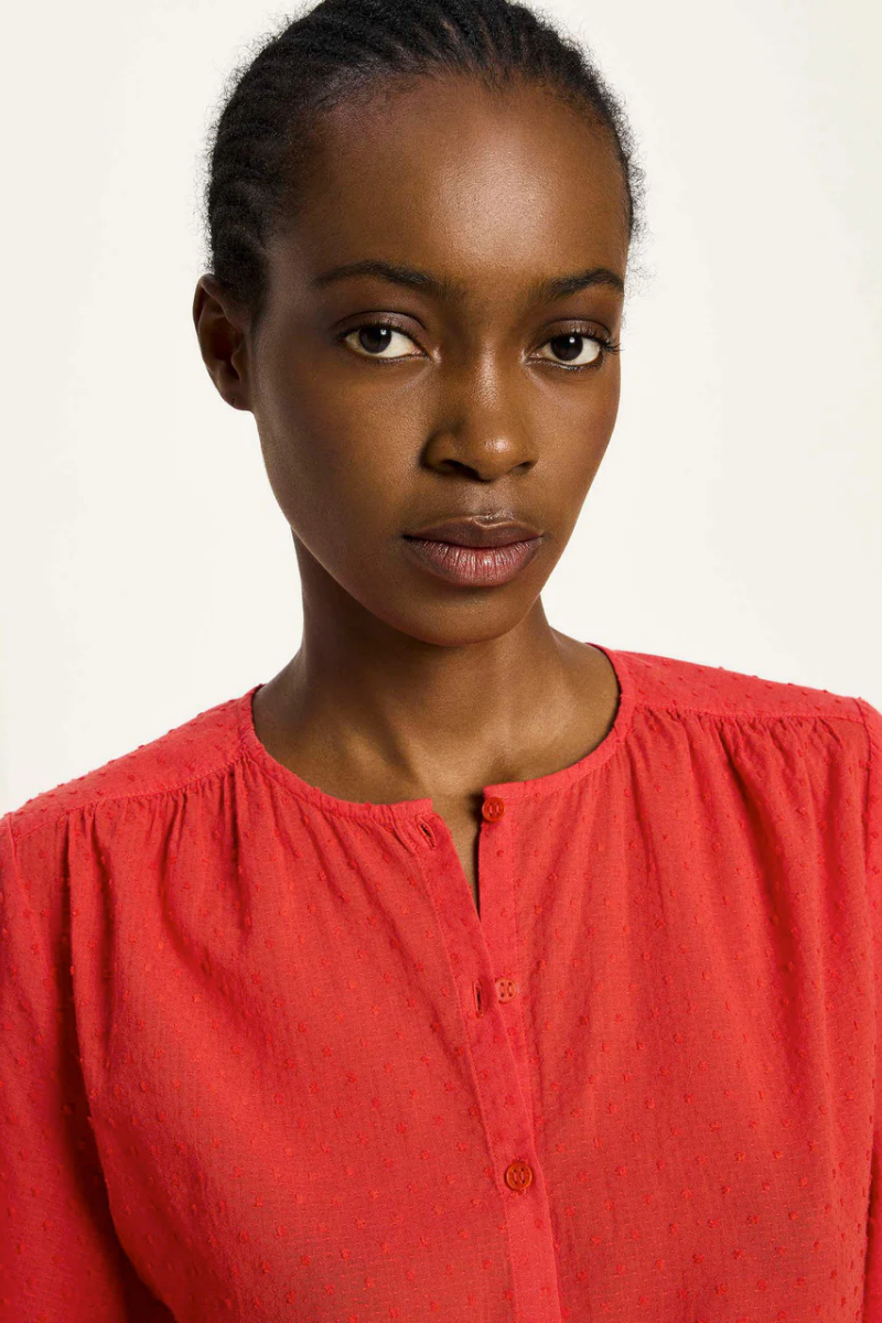 Die Strukturbluse Red Alert von LANIUS vereint Leichtigkeit mit einer markanten Textur und sorgt so für einen femininen Auftritt. Die 3/4-Arm-Bluse besticht durch ihre feine Webstruktur mit Ton-in-Ton-Noppen, die ihr eine lebendige und elegante Optik verleihen. Perfekt für stilvolle Alltagsoutfits – kombiniert mit Jeans, weiten Stoffhosen oder lässig über einem Rock. So bringt sie frischen Schwung in Ihre Garderobe und garantiert ein angenehmes Tragegefühl den ganzen Tag.