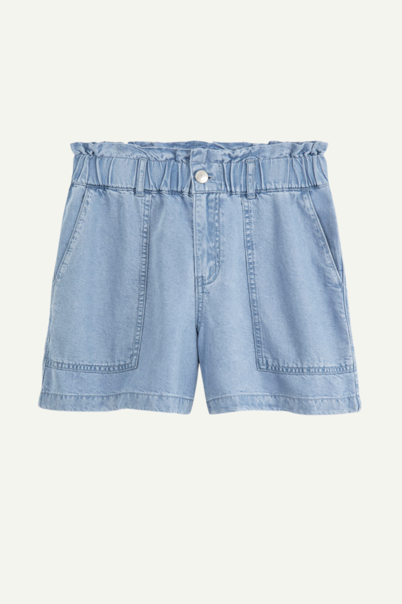 Erweitere deine Garderobe mit den bequemen und stylischen Shorts Kiki Jeans Clair von SUNCOO Paris. Die hellen Denim-Paperbag-Shorts verfügen über einen elastischen Bund mit Rüschen und Gürtelschlaufen sowie einen Knopf- und Reißverschluss. Mit zwei vorderen Seitentaschen und zwei Gesäßtaschen bieten sie genügend Platz für deine Essentials. Perfekt für einen lässigen und dennoch trendigen Look.