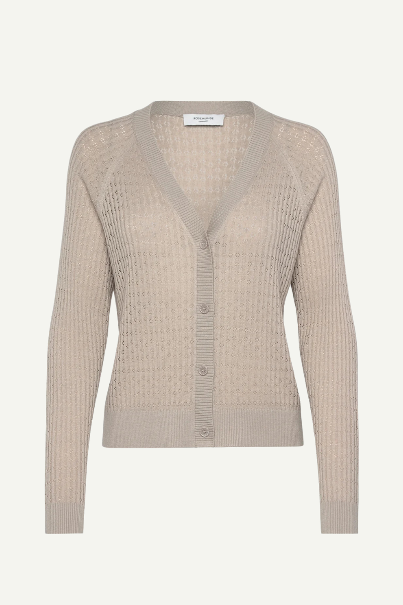 Die Strickjacke Samira Silver Lining von Rosemunde Copenhagen ist ein wunderschön gearbeitetes Kleidungsstück aus Pointelle-Strick. Mit langen Ärmeln und Knopfverschluss an der Vorderseite ist sie die perfekte Ergänzung für jedes Outfit. Ihr zarter Stoff und klassisches Design machen sie zum idealen Begleiter für jede Gelegenheit.