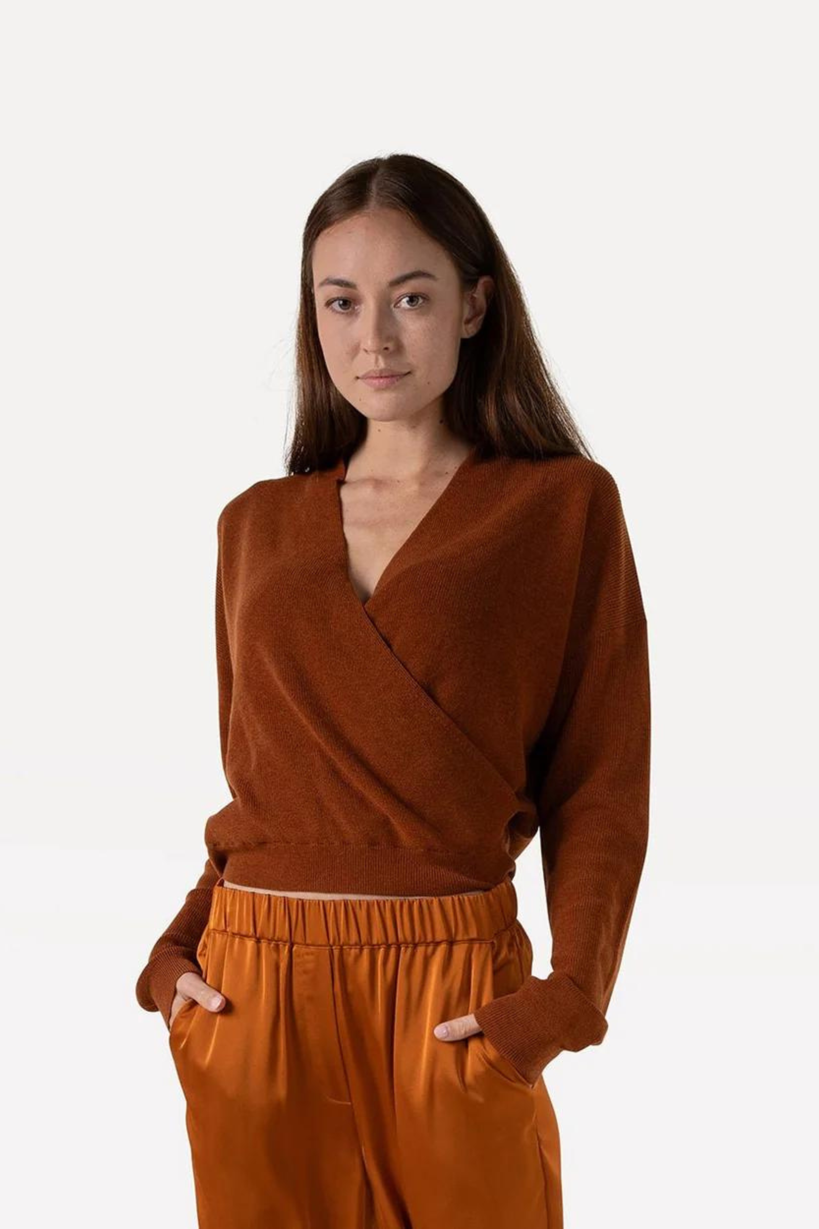 Vielseitiger Pullover im Wrap-Look von Another Label. Der feine Sommerstrick bietet ein leichtes und atmungsaktives Gefühl, ideal als Layering-Piece. Die überschnittenen Schultern und die lockere Passform des Pullovers sorgen für eine entspannte und bequeme Silhouette, während der eingearbeitete Bund eine gewisse Struktur und Raffinesse verleiht. Ob beim entspannten Brunch oder einem lockeren Abendtreffen - dieser Pullover vereint Komfort und Stil.