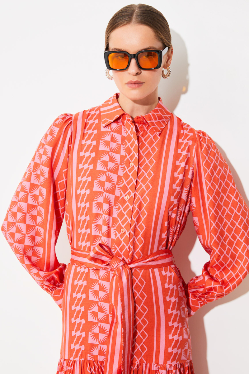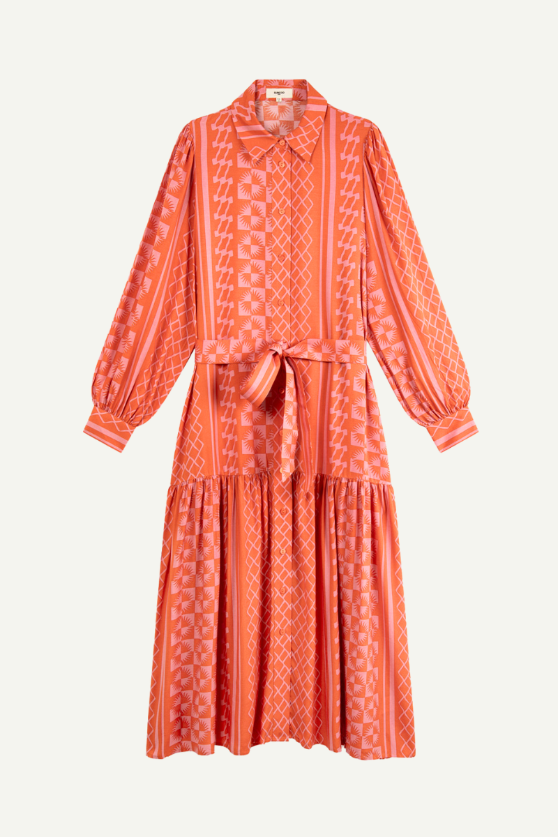 Das Kleid Chadia Geranium von SUNCOO ist ein luftiges Kleid mit einem wunderschönen geranienähnlichen Sonnenmuster. Mit dem Hemdkragen und dem Knopfverschluss vorne ist es sowohl schick als auch bequem. Der Ton-in-Ton abnehmbare Gürtel betont die Taille und die gepufften langen Ärmel verleihen dem Kleid einen verspielten Look. Ein Must-Have für jeden sommerlichen Anlass!