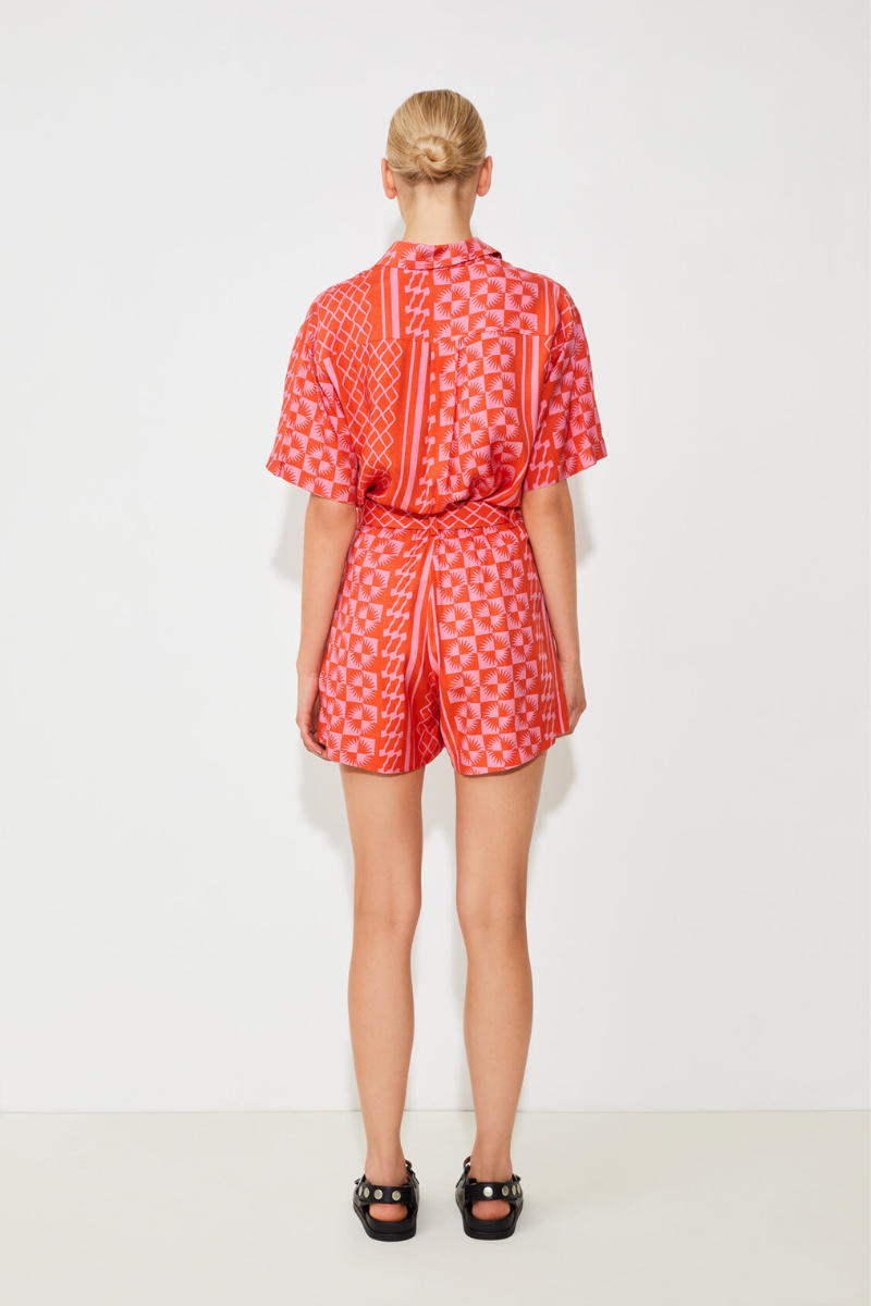 Diese hochtaillierten Shorts von SUNCOO mit Sonnenblumendruck sind perfekt für einen sommerlichen Tag. Mit ihrem Reißverschluss und den Haken- und Ösenverschlüssen unter der Knopfleiste bieten sie maximalen Komfort. Der abnehmbare Ton-in-Ton-Gürtel ermöglicht es, die Passform individuell anzupassen. Zudem bieten die beiden Seitentaschen praktischen Stauraum für unterwegs.