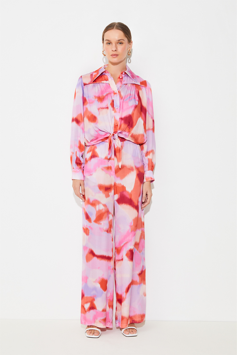 Die Bluse Luna Fuchsia von SUNCOO Paris ist ein fließendes Oberteil mit einem fuchsiafarbenen Muster, welches durch den Knoteneffekt besonders hervorgehoben wird. Der Hemdkragen und die ton-in-ton Knopfleiste verleihen der Bluse einen eleganten Touch. Die langen Puffärmel sorgen für einen femininen Look. Perfekt für einen stilvollen Auftritt.