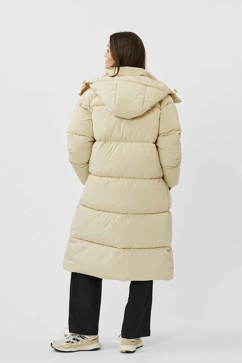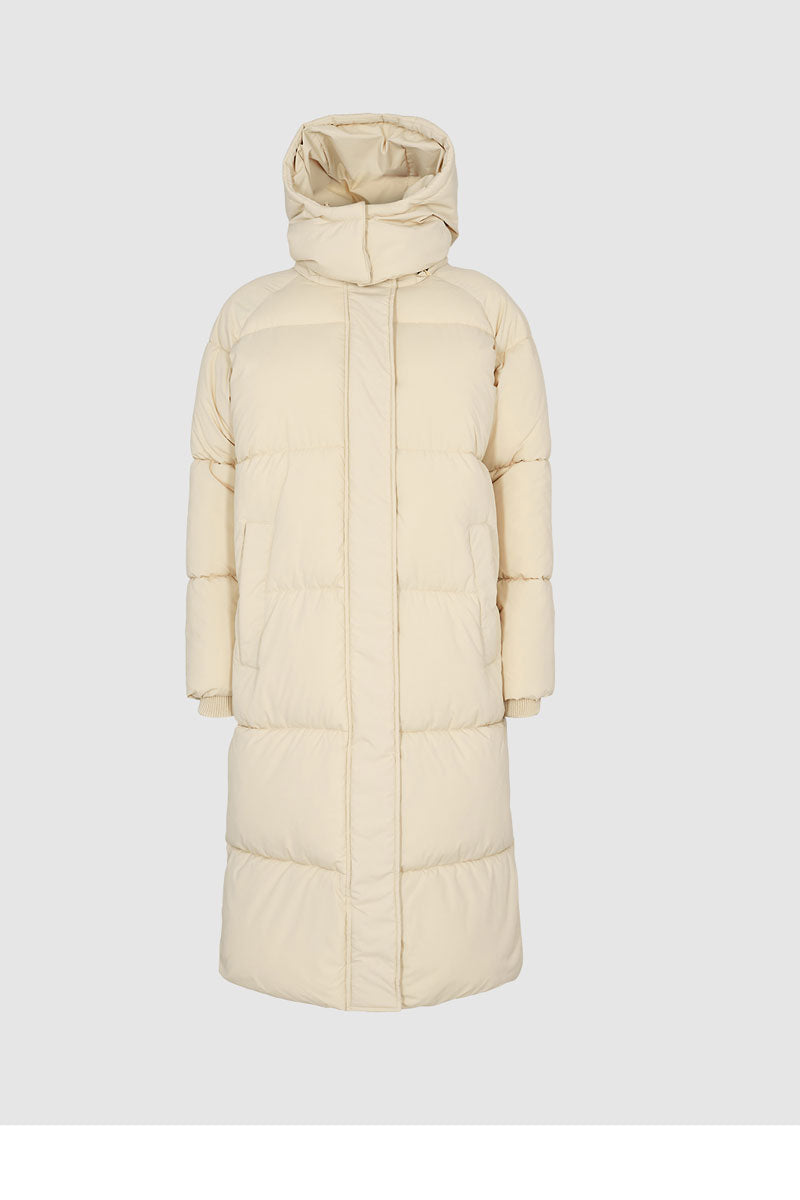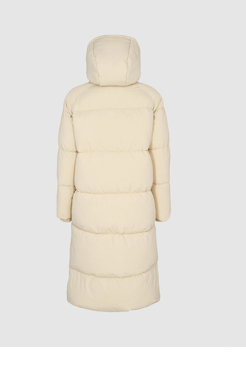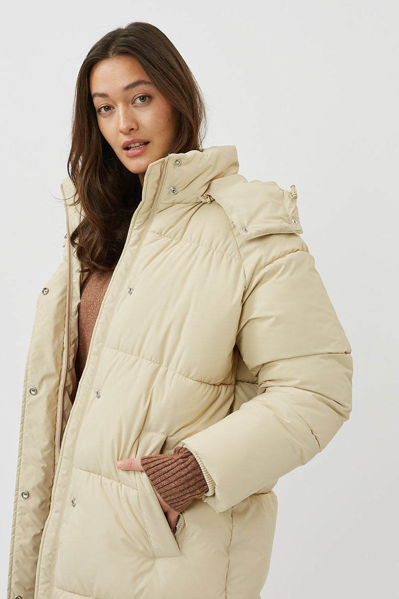 Gesteppter Wintermantel mit elastischen Armbündchen und Kaputze.