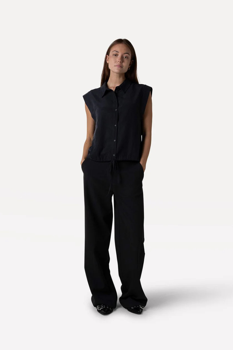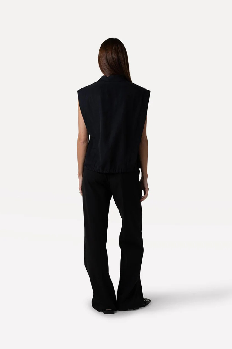 Dieses ärmellose Top von Another Label Amsterdam bietet eine anpassbare Silhouette mit regulärer Passform durch einen Kordelzug am Saum. Die vordere Knopfleiste und der glänzende Punkt Jacquard-Stoff verleihen ihm Eleganz und Textur. Aus leicht strukturiertem Lyocell, bietet das Oberteil auch umweltfreundliche Nachhaltigkeit mit über 40% Lyocell Anteil. Perfekt für einen schicken Abendlook mit Statement-Halskette und Tailored-Hose oder unter einem Blazer für ein elegantes Büro-Outfit.