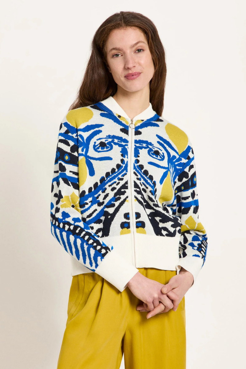 Ein vielseitiges Piece für bewusste Styling-Entscheidungen. Die hochwertige Baumwolle in GOTS-Qualität bietet optimalen Tragekomfort und Langlebigkeit. Das kunstvolle Jacquardmuster setzt subtile Akzente, während der präzise geschnittene Schnitt mit funktionaler Knopfleiste zeitlose Eleganz ausstrahlt. Ideal zum Layering über minimalistischen Basics oder als eigenständiger Statement-Piece.