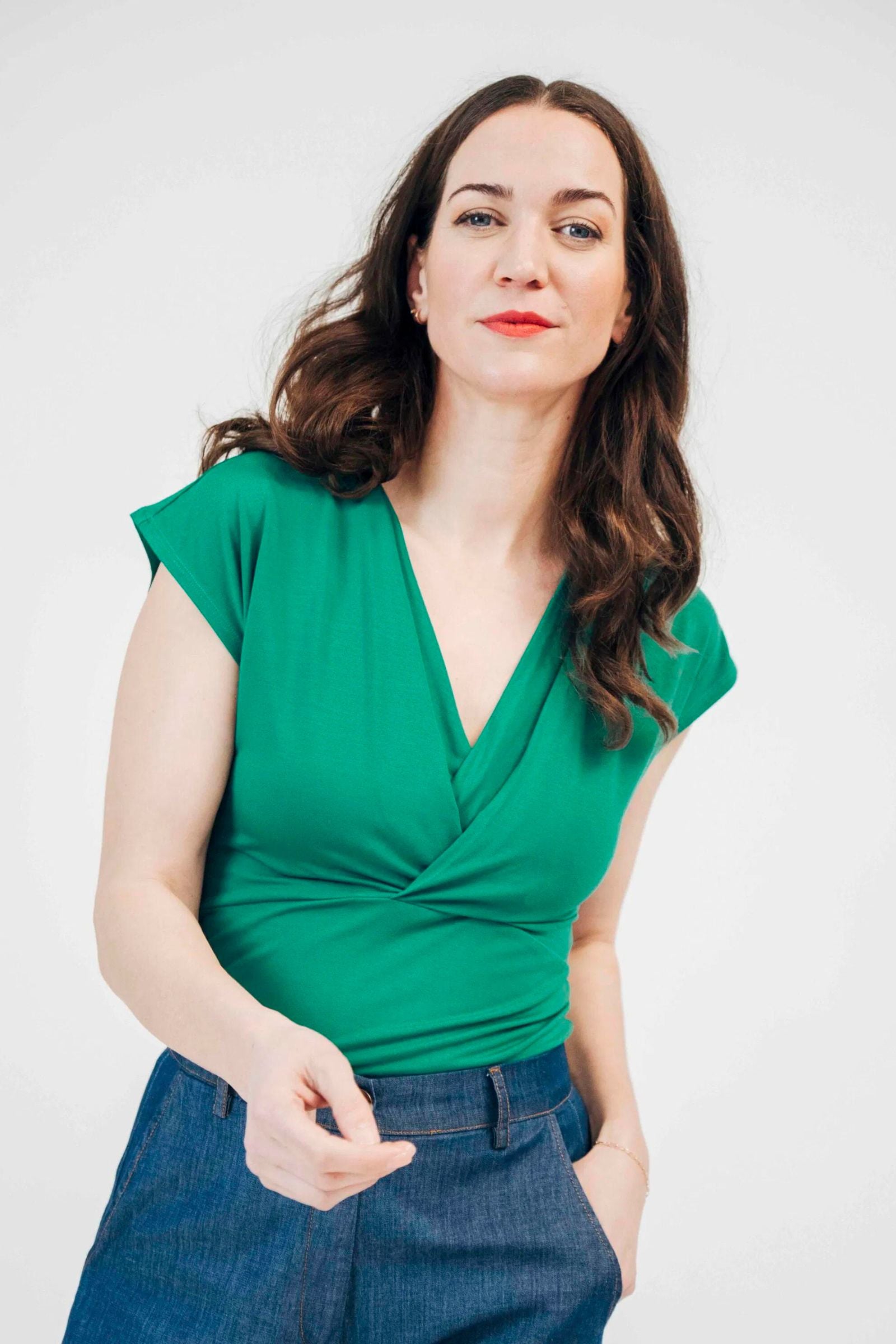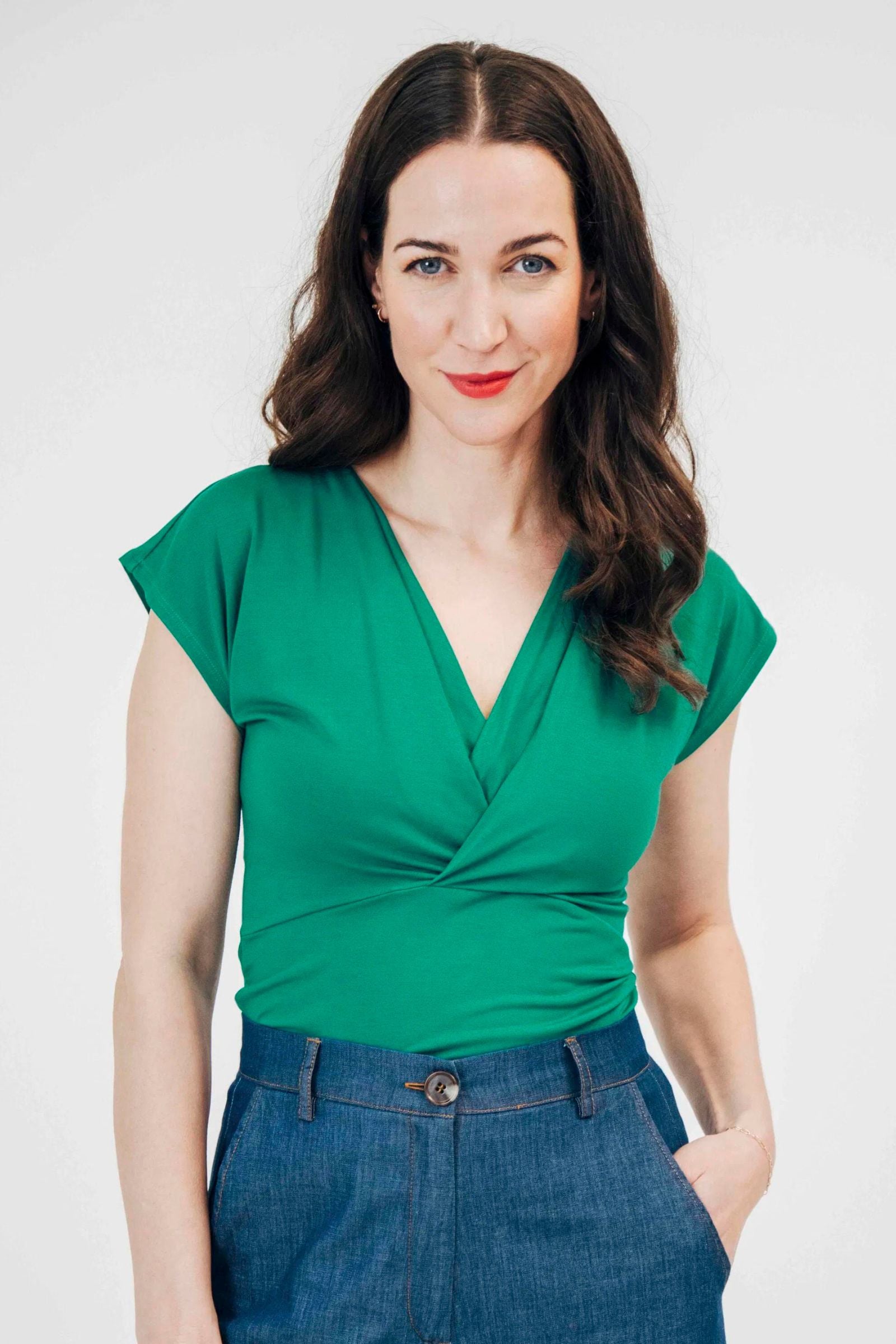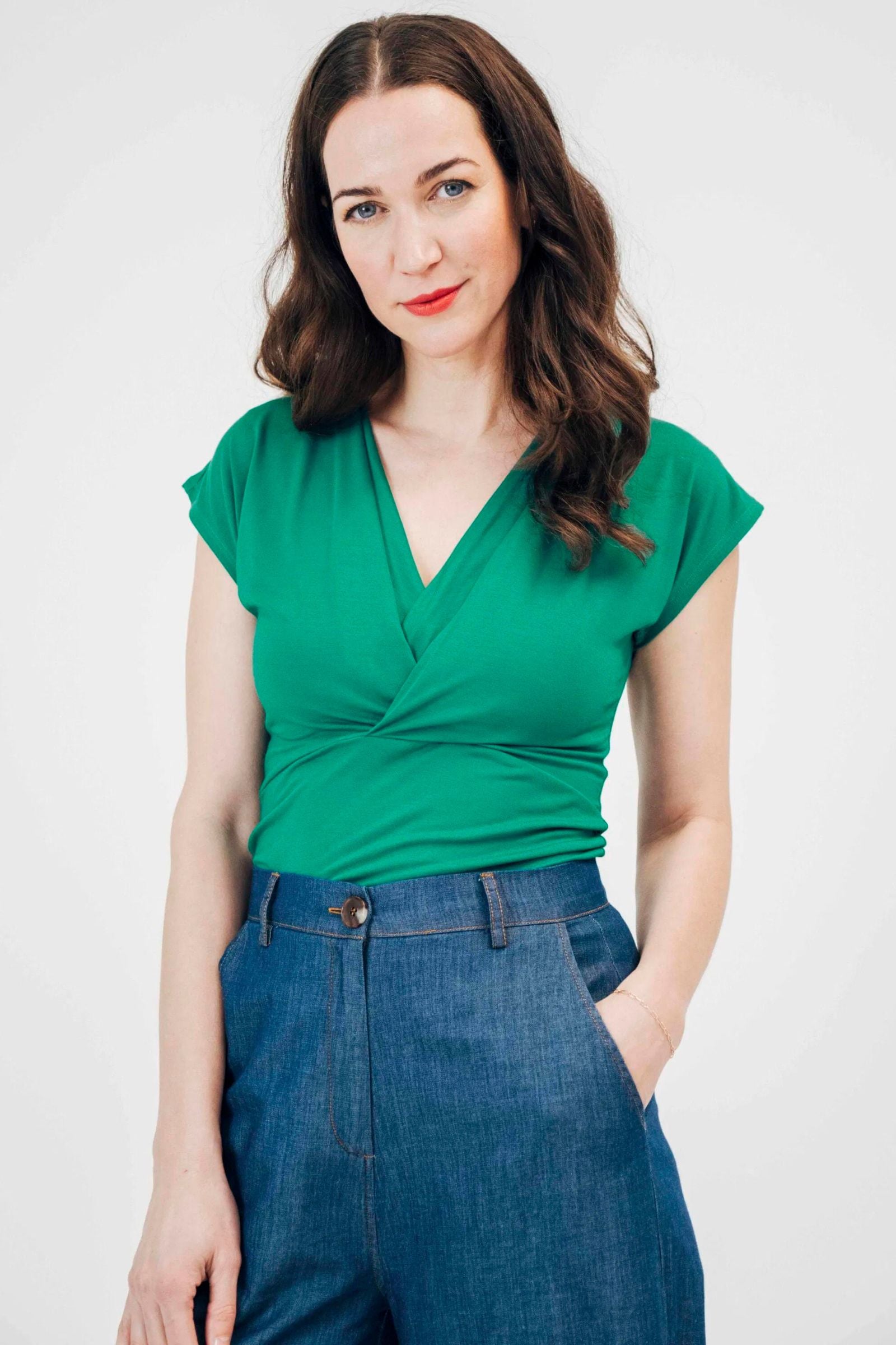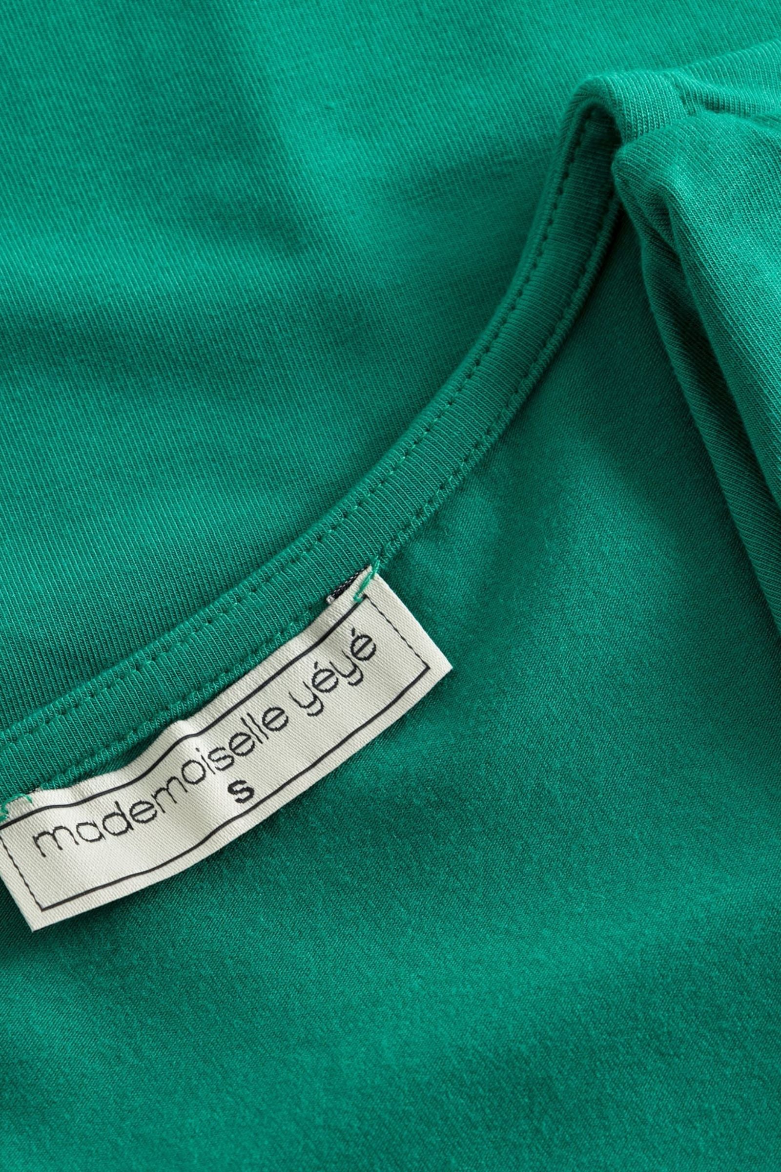 Dieses Top von Mademoiselle YéYé zaubert eine schöne Figur mit einem Vintage-Touch. Das weiche Micromodal und die Faltenpartie am Ausschnitt verleihen diesem Top eine besonders feminine Note. Taillierter Passform, V-Ausschnitt, Falten-Detail und kurze Ärmel.