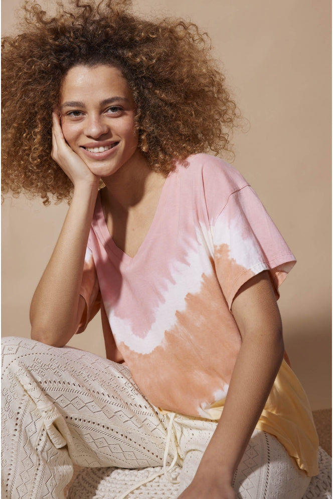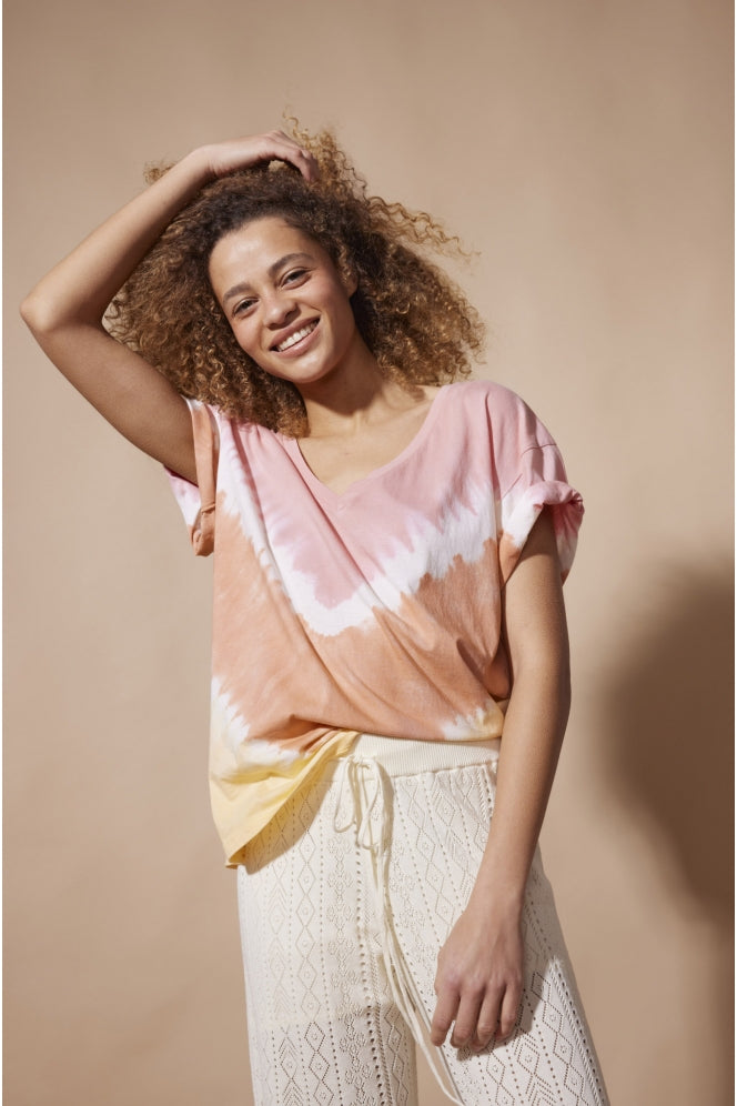 T-Shirt im Batiklook mit V-Ausschnitt aus 100% Bio Baumwolle von Louizon