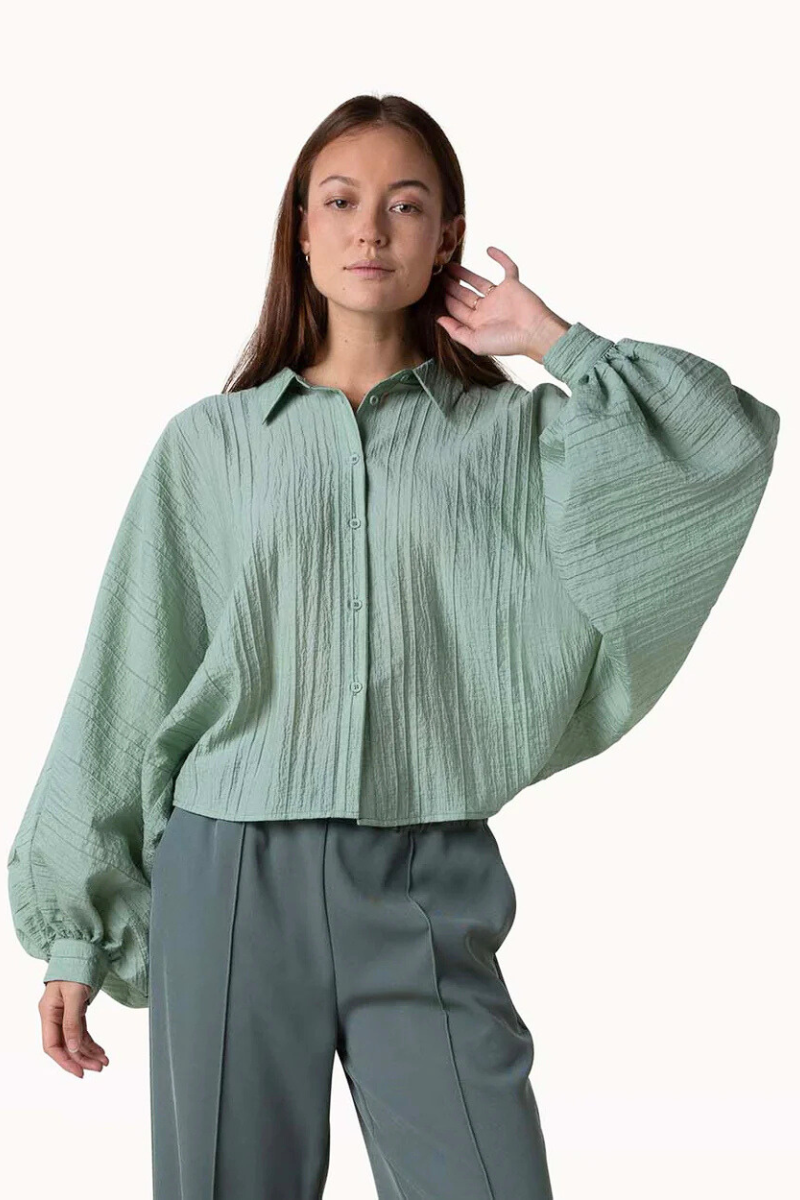 Die Bluse Bobby von Another Label Amsterdam besitzt einen oversized, luftigen Schnitt und entspannte Dolman-Ärmel für eine lässige Silhouette. Die diagonale Streifenstruktur verleiht ihr Textur und visuelles Interesse. Aus einer Lyocell-Baumwoll-Mischung hergestellt, ist diese Bluse weich, atmungsaktiv und umweltfreundlich, da sie zu mehr als 50% aus Lyocell besteht. Perfekt für Komfort und Stil.