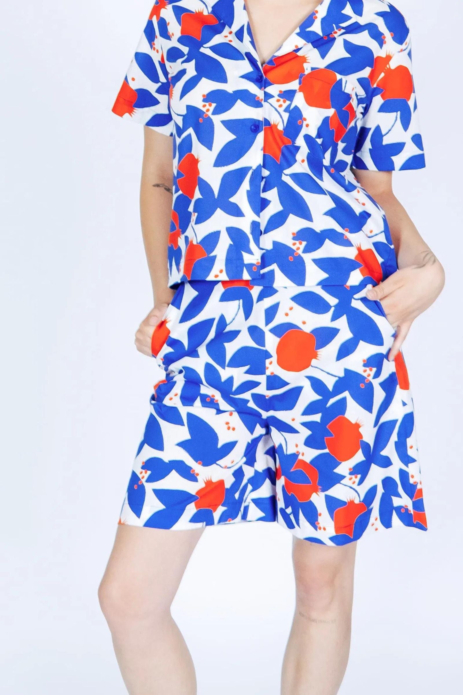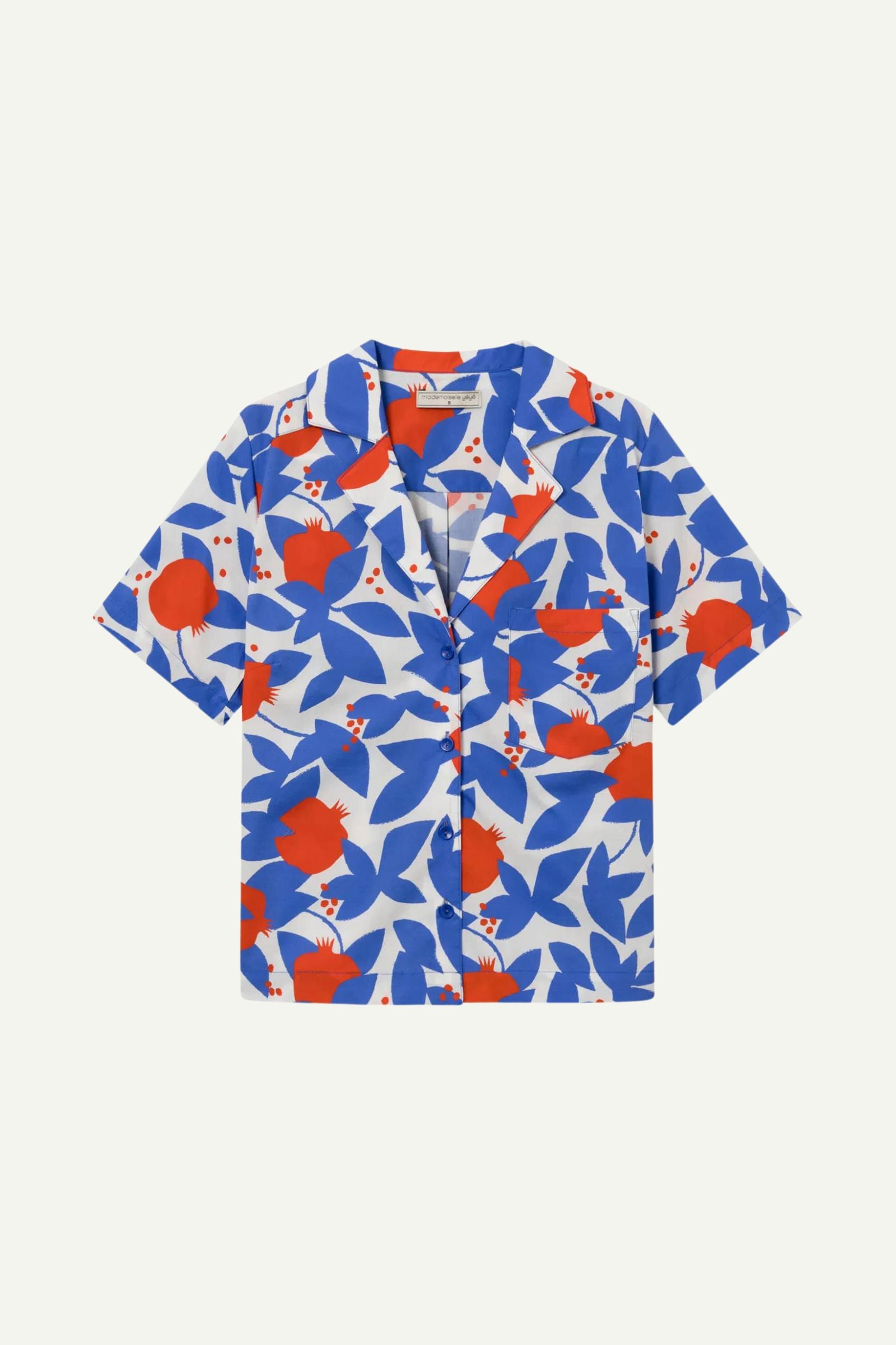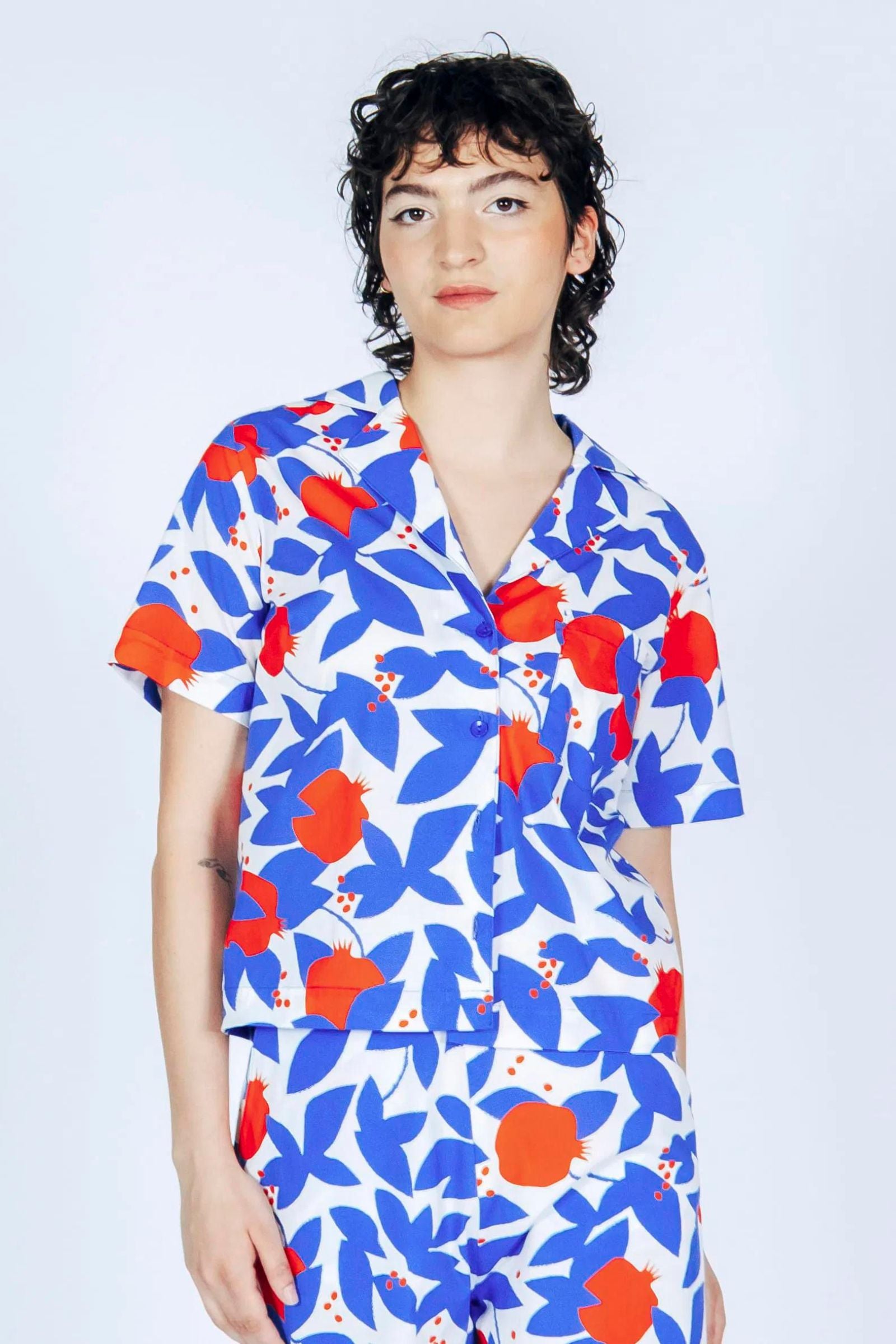 Diese Bluse von Mademoiselle YéYé begeistert mit ihrem modernen, kastigen Schnitt und dem klassischen Reverskragen. Durch die Knopfleiste in der vorderen Mitte wird sie zum absoluten Hingucker. Mit kurzen Ärmeln und einer praktischen aufgesetzten Brusttasche ist sie nicht nur stylish, sondern auch funktional.