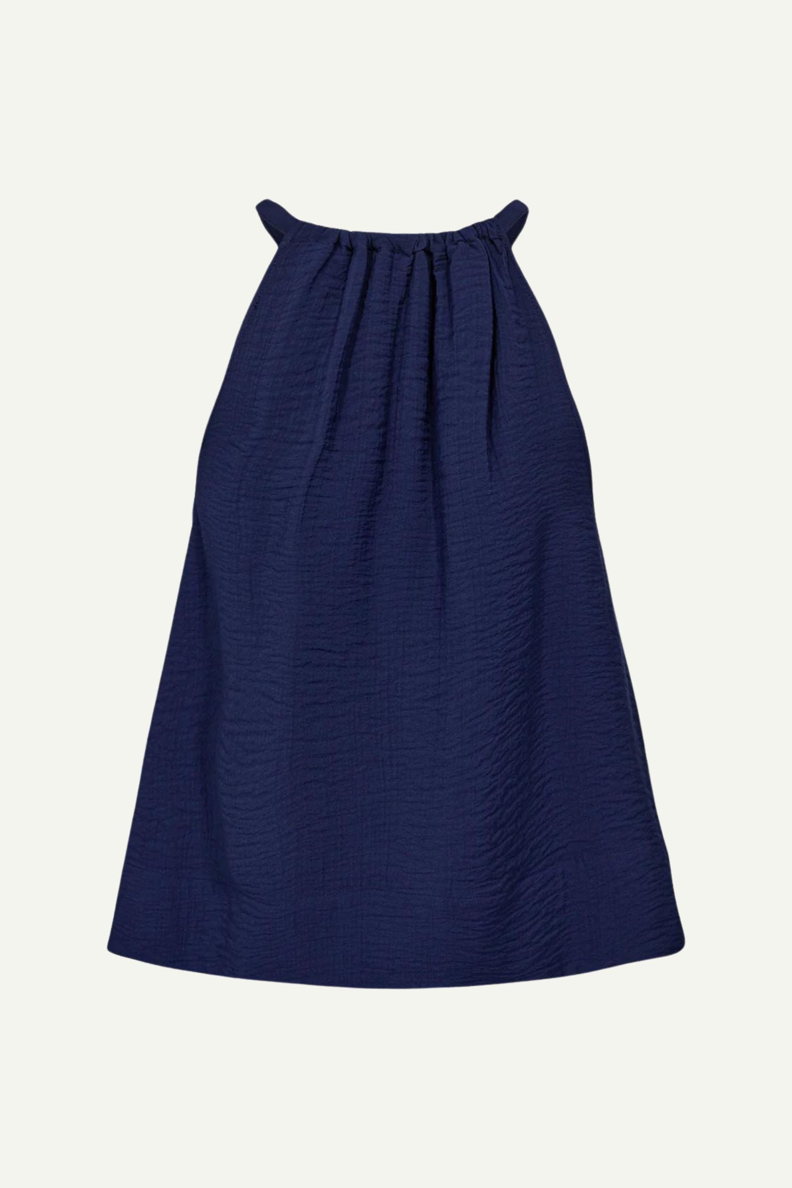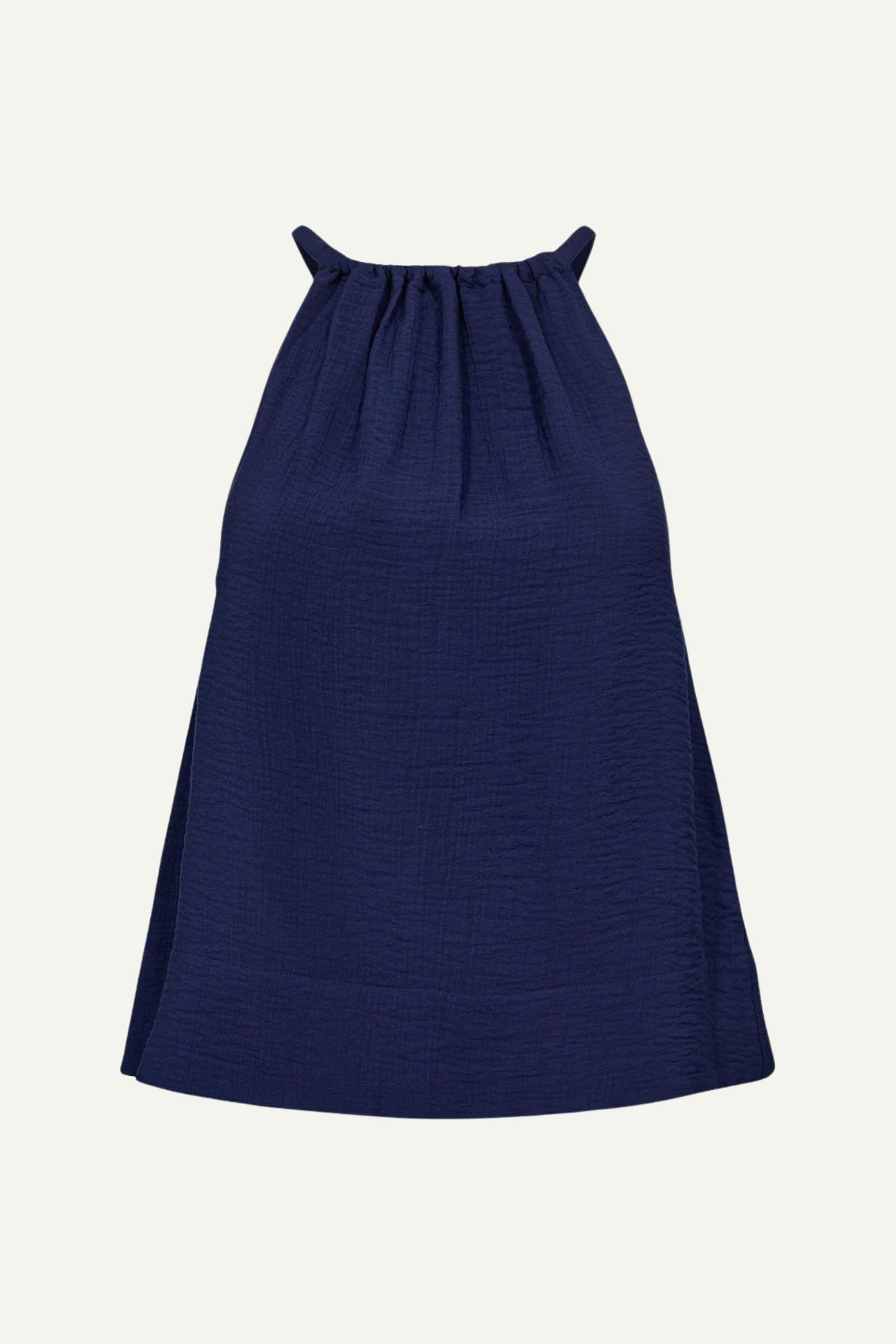 Leichtes Halterneck-Top hergestellt aus weicher Viskose und strapazierfähigem Nylon, bietet es einen lockeren Schnitt und eine feminine Ausschnittform. Perfekt für warme Tage, um bequem und stilvoll unterwegs zu sein.