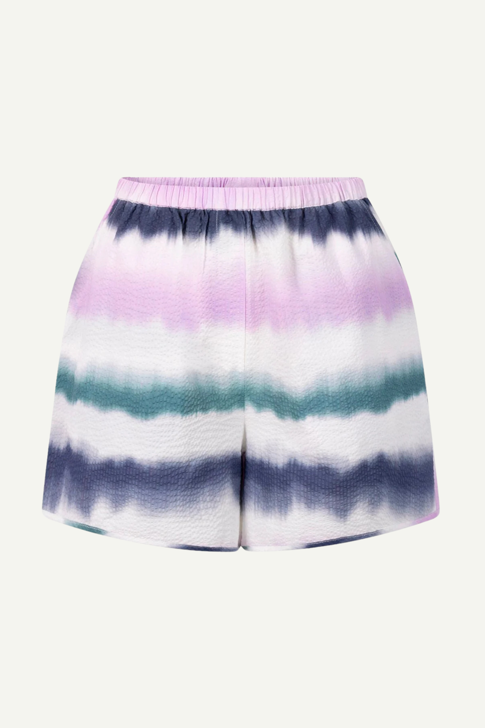 Die Rachele Shorts von Another Label bieten einen entspannten und dennoch stilvollen Look mit einer mittleren bis hohen Taille und einem elastischen Bund für ultimativen Komfort. Die seitlichen Taschen sorgen für Funktionalität, während der Seersucker-Baumwollstoff für Atmungsaktivität und ein leichtes, texturiertes Gefühl sorgt. Das Tie-Dye-Streifenmuster verleiht eine verspielte und einzigartige Note und macht diese Shorts zu einem lustigen Highlight für deine Garderobe.