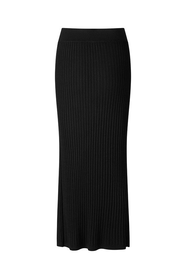 Gemütlicher Strick-Rock in Schwarz mit Rib-Struktur und seitlichem Schlitz.