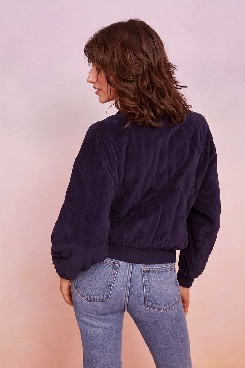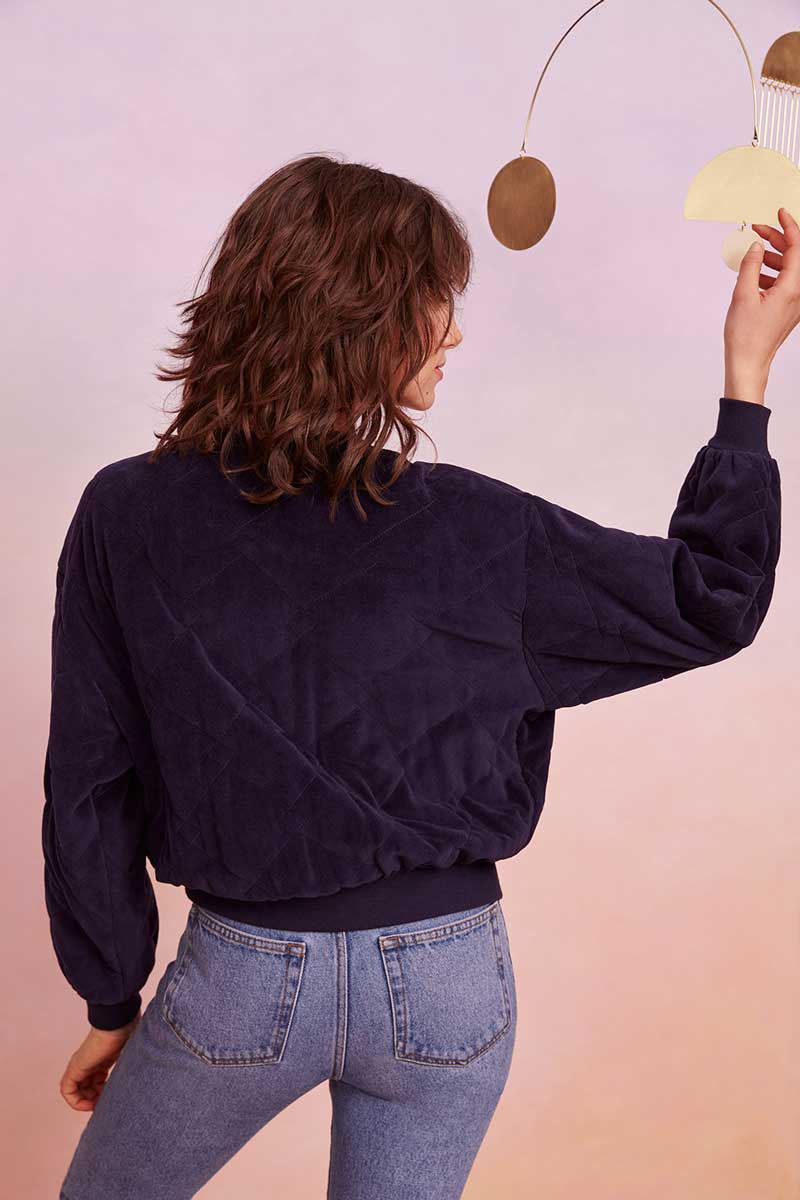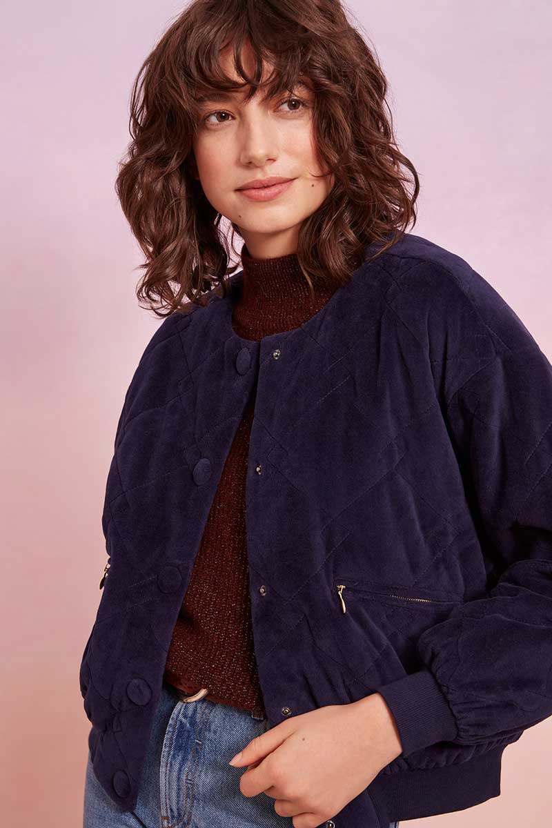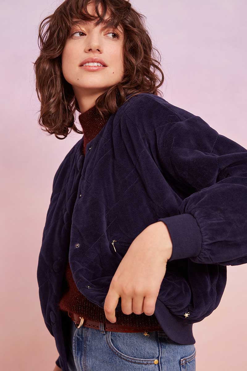 Gesteppte Samtjacke im Teddystil aus Baumwoll-Mix. Die Steppung wurde von den Des Petits Hauts Stylisten entworfen und mit einer speziellen Technik hergestellt.