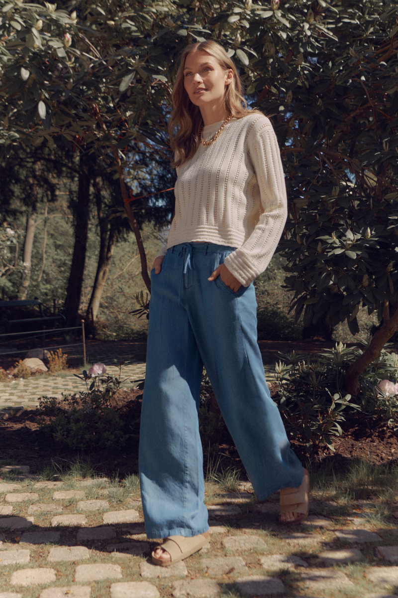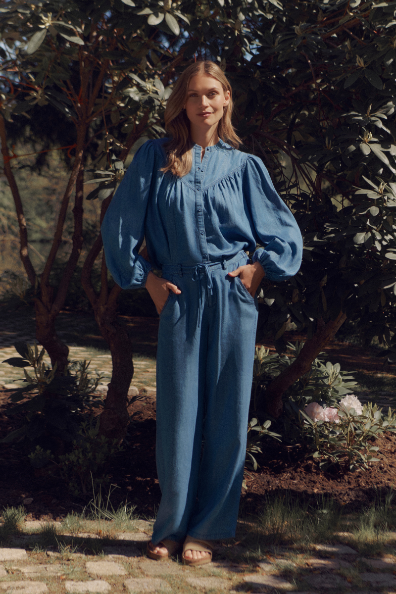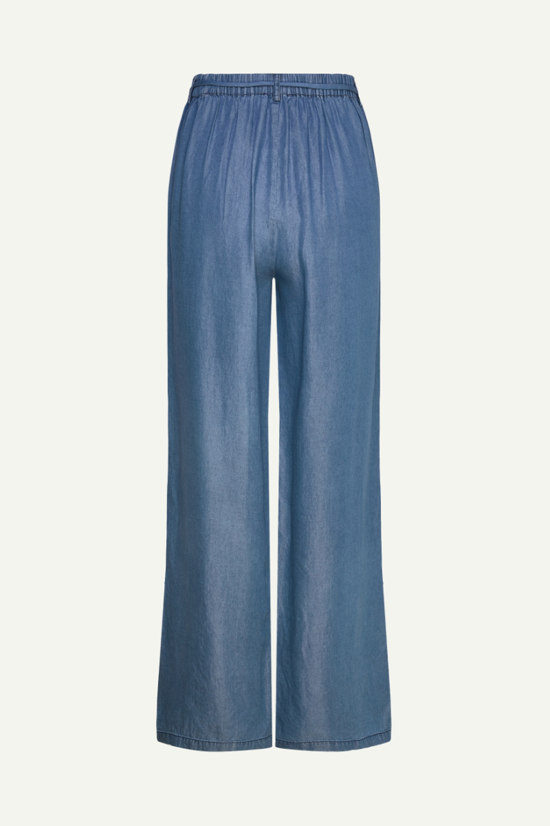 Die RWDallas Trousers von Rosemunde Copenhagen verbinden zeitlose Eleganz mit modernem Design. Mit ihrem charakteristischen weiten Beinschnitt, dem praktischen Bindegürtel an der Taille und dem funktionalen Reißverschluss bieten diese Hosen maximale Flexibilität beim Styling.