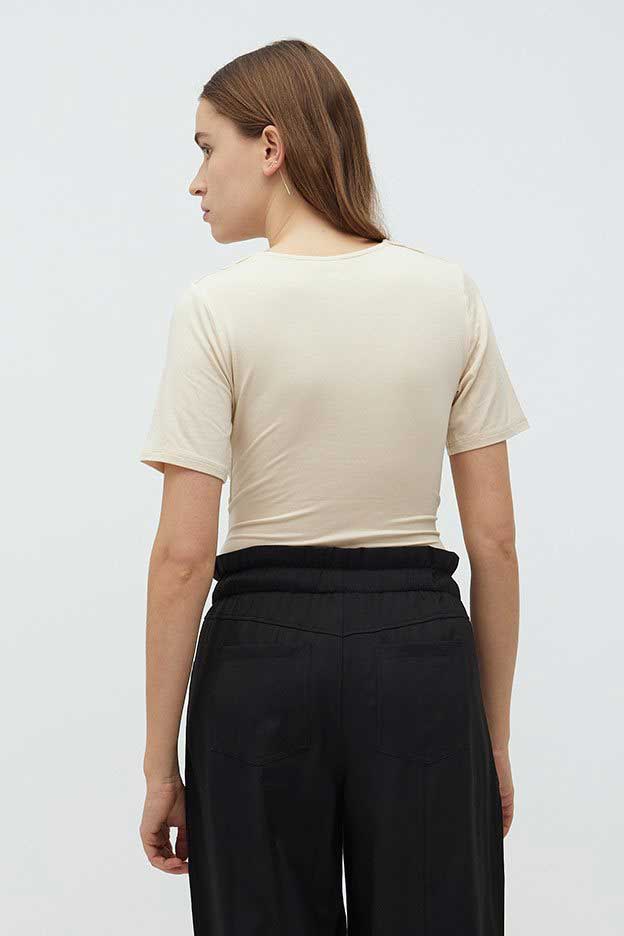 Das Body mit kurzen Ärmeln im Wickel-Look ist ein echtes Highlight! Die eng anliegende Passform betont deine Figur und der V-Ausschnitt setzt dein Dekolleté perfekt in Szene. Die Farbe Créme Weiss verleiht dem Body eine edle Note und lässt sich perfekt zu verschiedenen Outfits kombinieren.