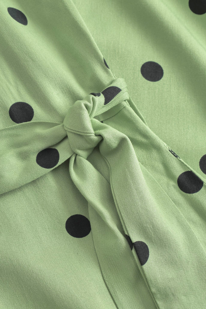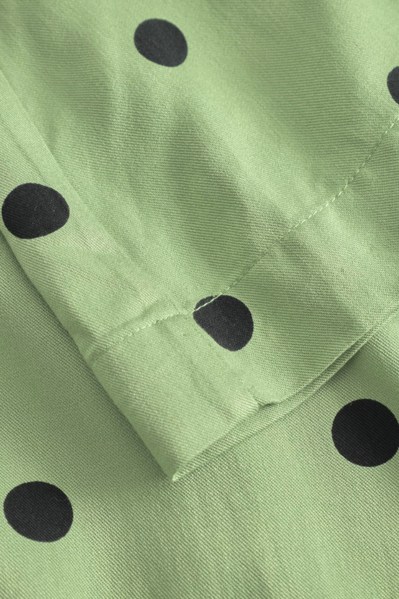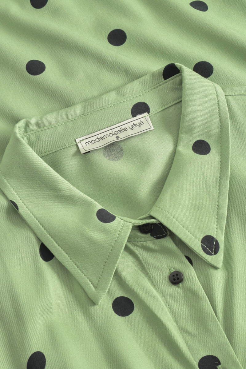 Dieses grüne Hemdblusenkleid von Mademoiselle YéYé aus leichtem Twill ohne Stretch sorgt für eine lockere Silhouette und eine bequeme Passform. Mit seiner Midi-Länge und dem Umlegekragen ist es ideal für jeden Anlass. Die verlängerte Schulternaht sowie das separat befestigte Bindeband und die Seitennahttaschen machen dieses Kleid zu einem Must-Have in diesem Sommer.