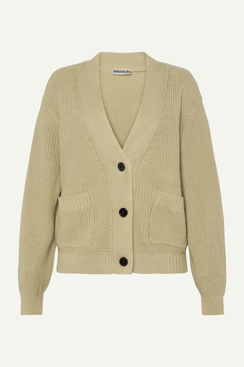 Die Strickjacke Gala von MINIMUM Fashion bietet angenehme Qualität aus 100% Bio-Baumwolle und zeichnet sich durch einen lässigen Look aus. Die Regular Fit Passform, der tiefe V-Ausschnitt und die zwei Vordertaschen machen sie zum perfekten Begleiter für jeden Tag.