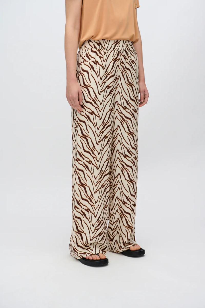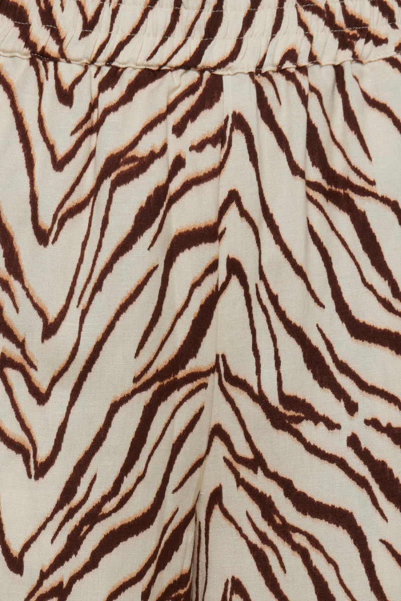 Bequem und trendy: Die Rosies Hose von MINIMUM Fashion ist die perfekte Wahl für für warme Sonnentage! Die entspannte Passform, weite Beine und elastischer Bund sorgen für höchsten Tragekomfort. Mit praktischen Seitentaschen und dem angesagten Zebra-Muster bist du perfekt für den Sommer bekleidet.