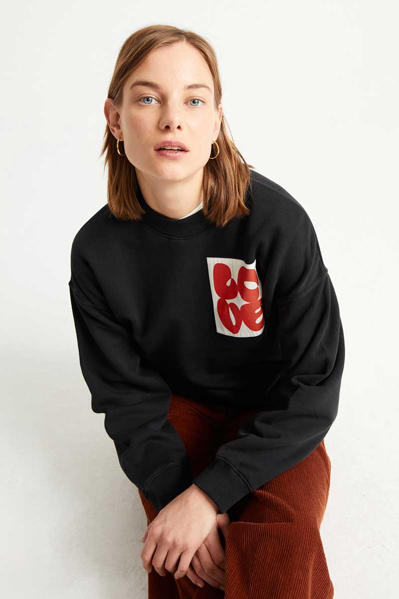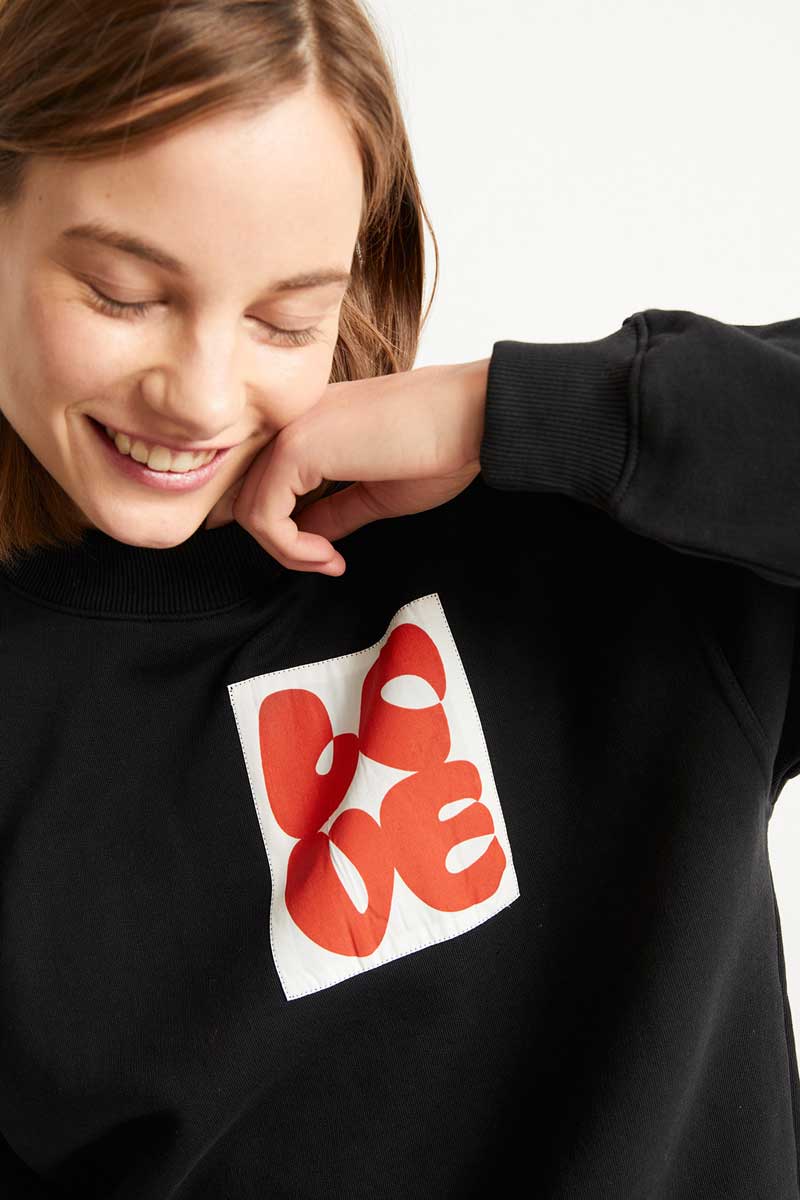 Schwarzer Pullover aus Bio-Baumwolle mit Print "Love"