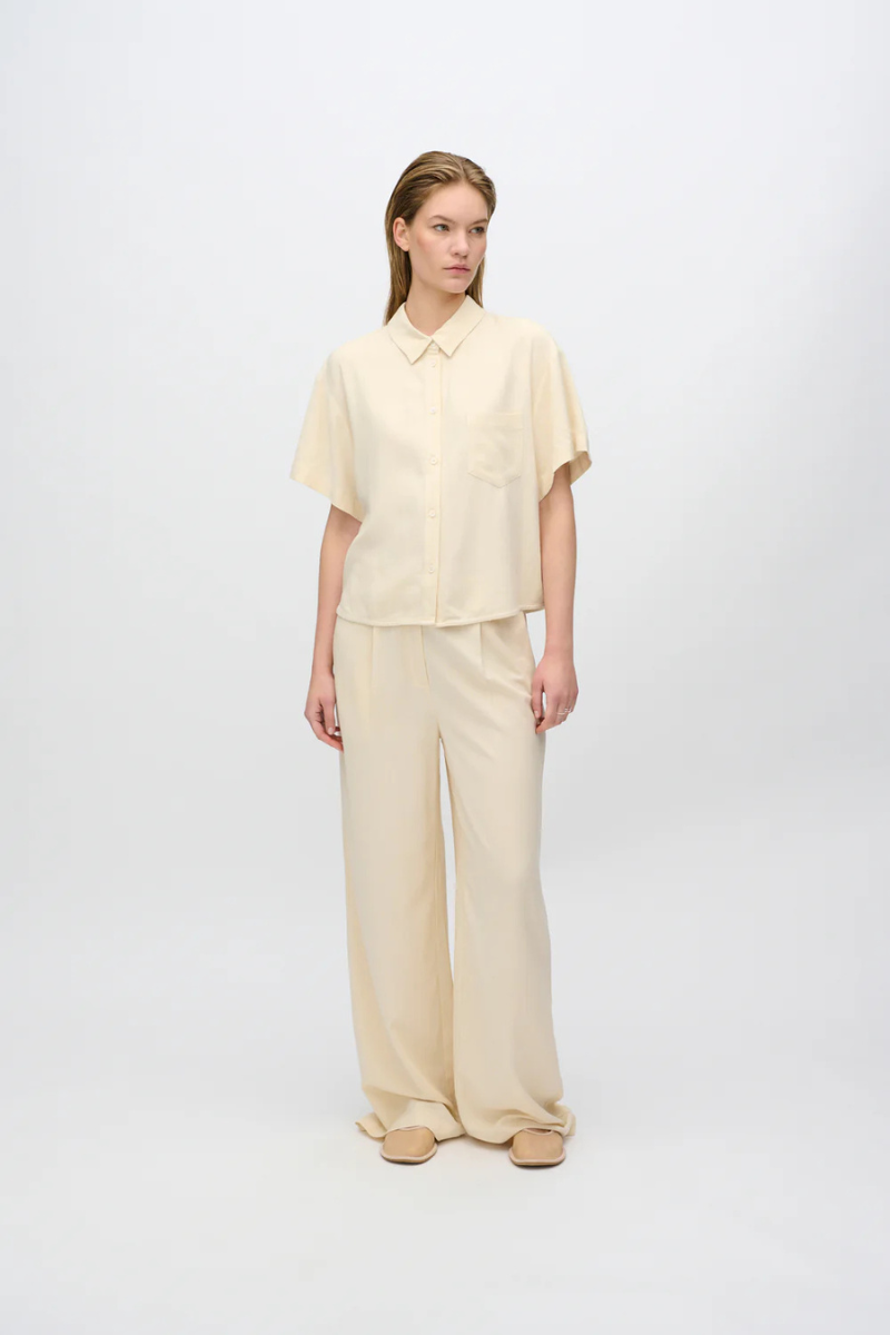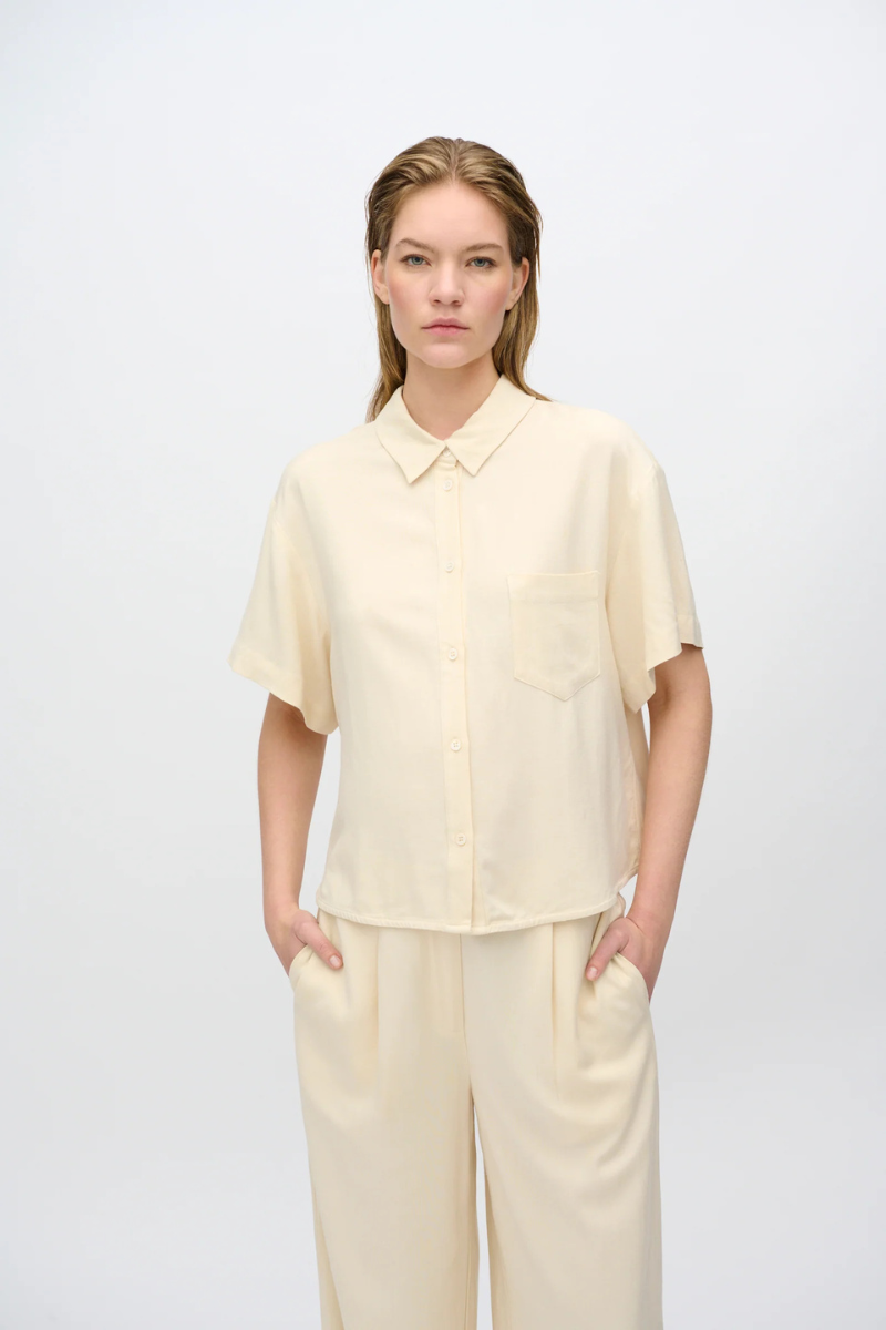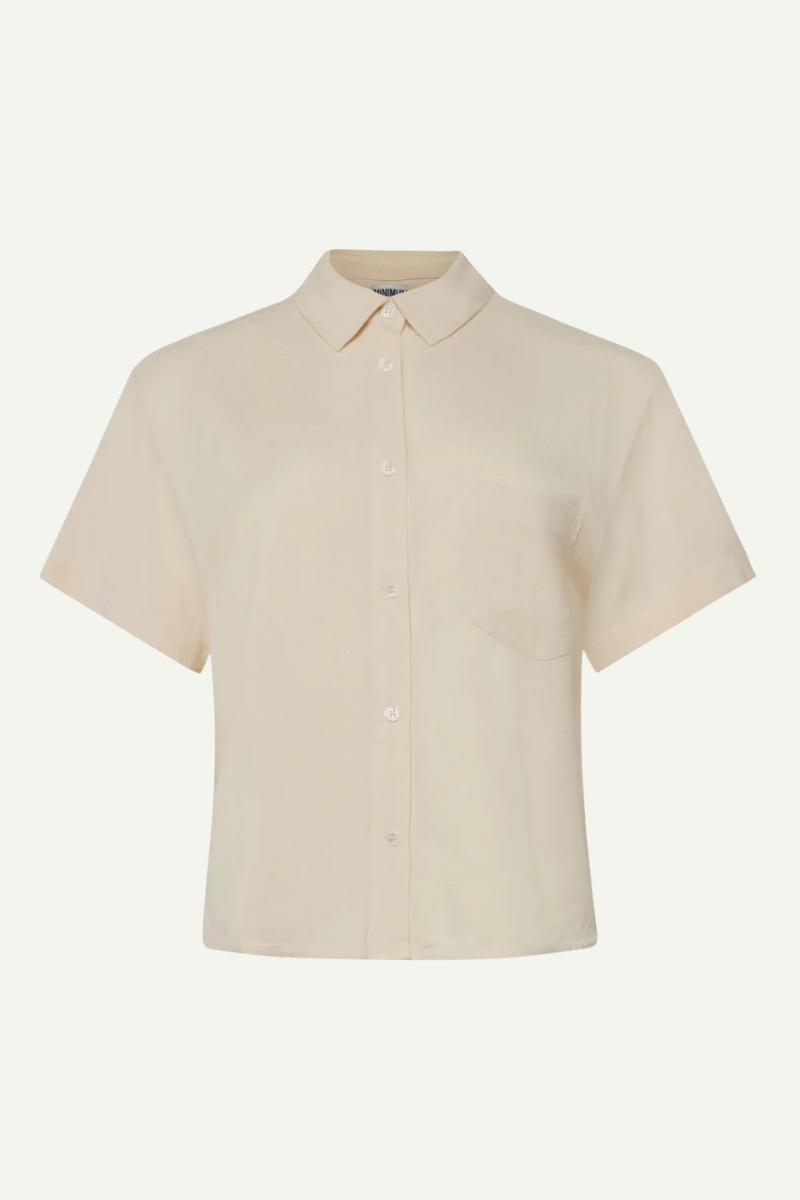 Diese wunderschöne Bluse von MINIMUM Fashion vereint zeitlosen Stil und Komfort mit einer leichten Leinen-Viskose-Mischung. Perfekt für den Sommer und auch für das ganze Jahr zum Schichten geeignet. Mit kurzen Ärmeln und einer dezenten Brusttasche bietet sie nicht nur eine einfache, cleane Optik, sondern auch praktische Features.