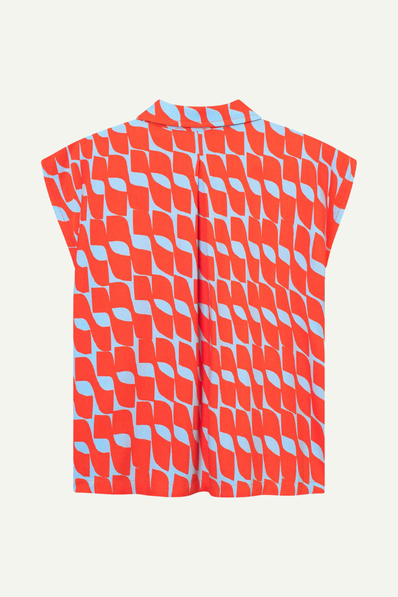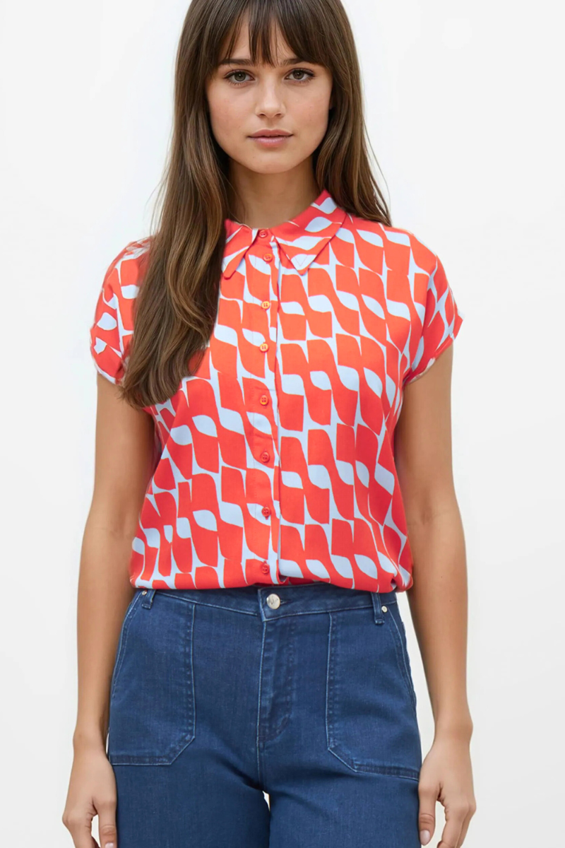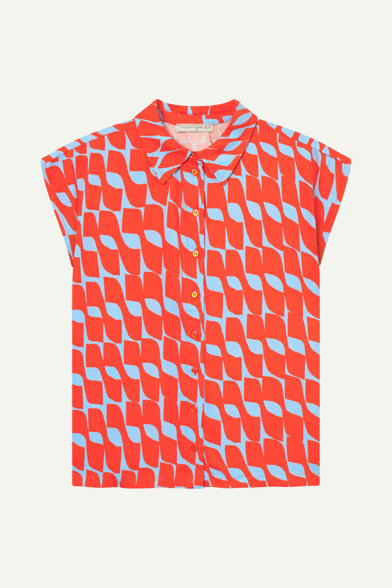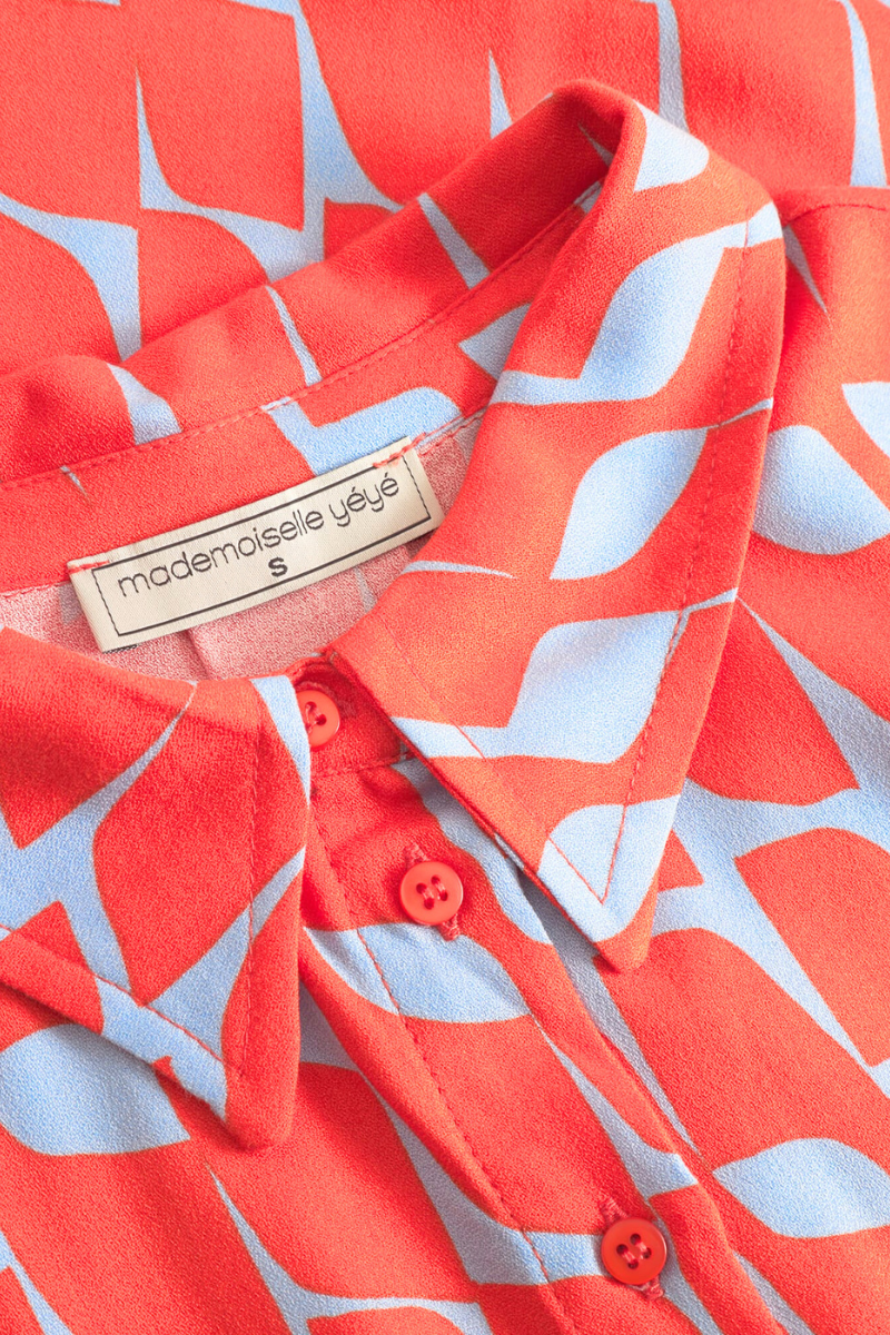 Diese Bluse von Mademoiselle YéYé in leichter Web-Qualität ohne Stretch garantiert ein angenehmes Tragegefühl und eine weite, lockere Passform. Der Hemdblusenkragen und die überschnittenen Schultern verleihen der klassischen kurzarm Bluse einen modernen Touch. Das hochwertige Crepe-Viskose Material und der einzigartige Print machen sie zum perfekten Begleiter für jeden Anlass.