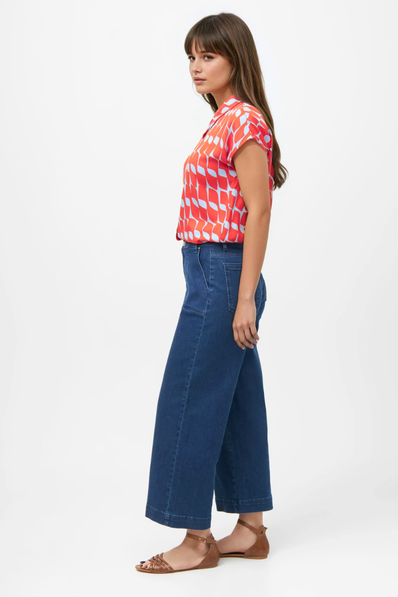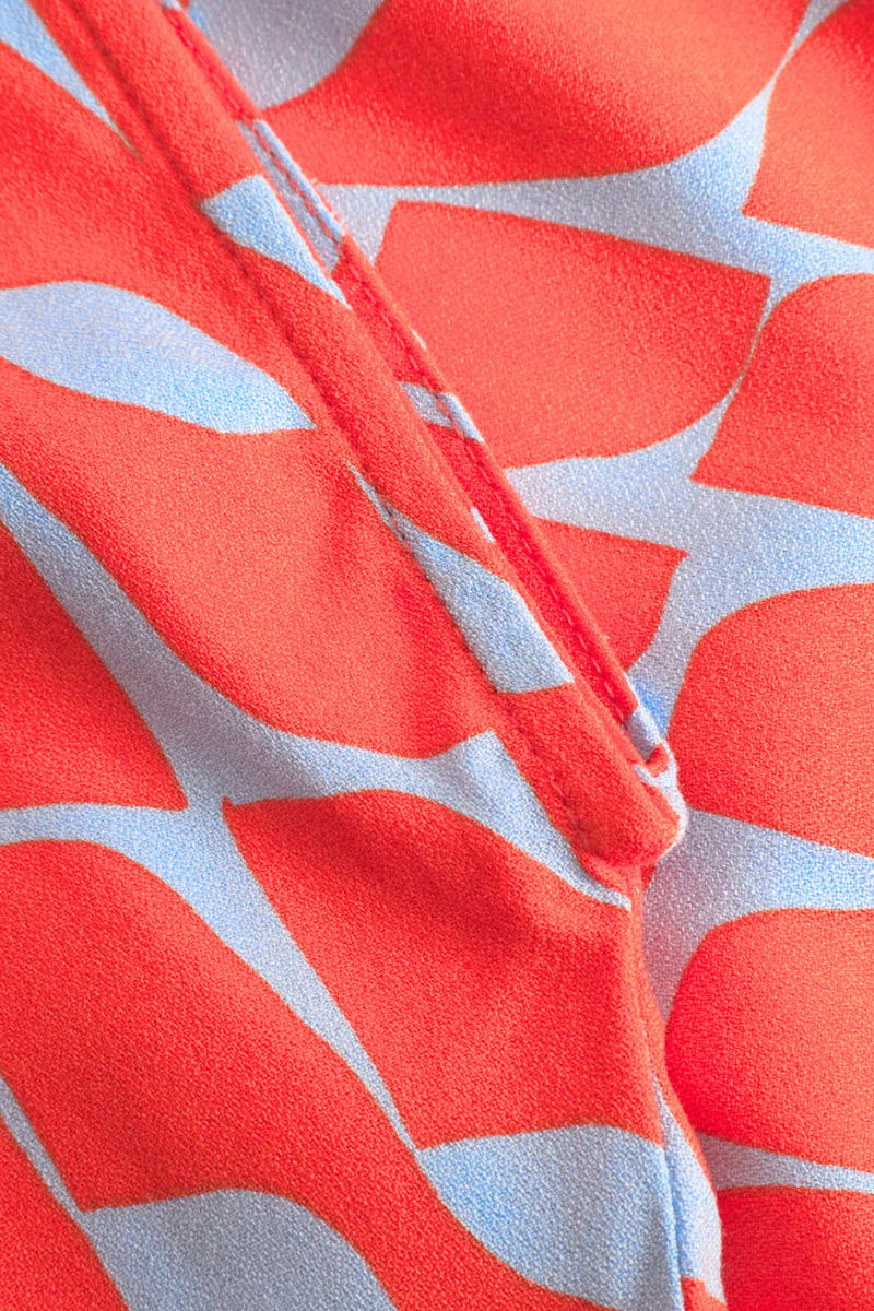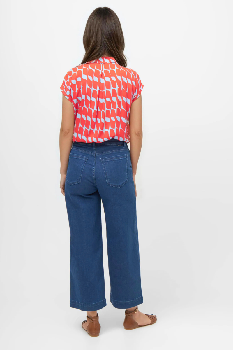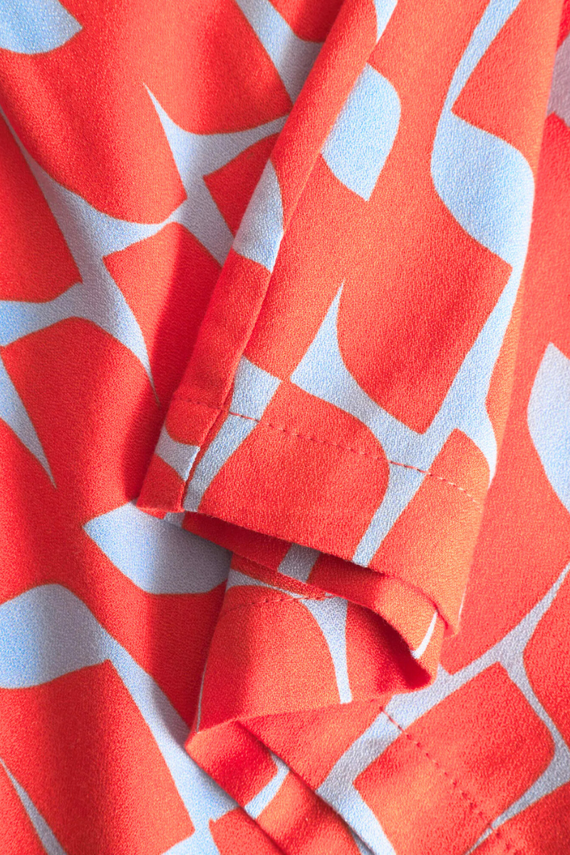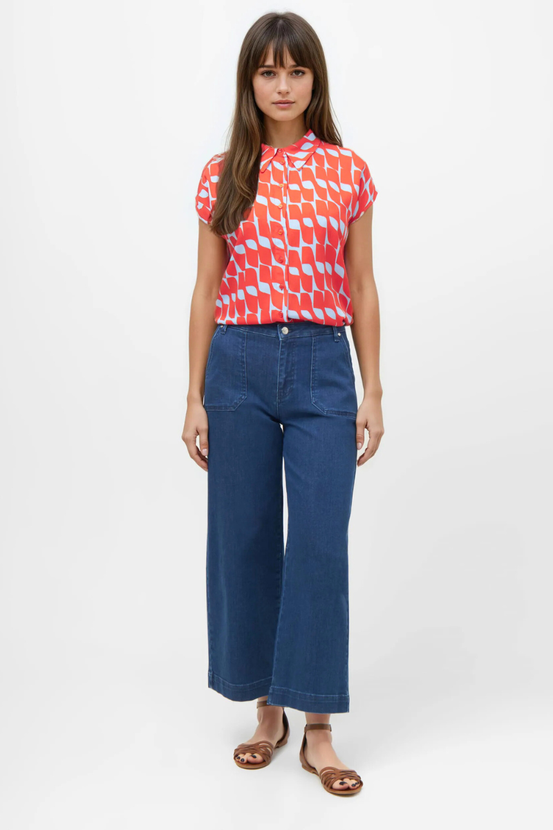Diese Bluse von Mademoiselle YéYé in leichter Web-Qualität ohne Stretch garantiert ein angenehmes Tragegefühl und eine weite, lockere Passform. Der Hemdblusenkragen und die überschnittenen Schultern verleihen der klassischen kurzarm Bluse einen modernen Touch. Das hochwertige Crepe-Viskose Material und der einzigartige Print machen sie zum perfekten Begleiter für jeden Anlass.
