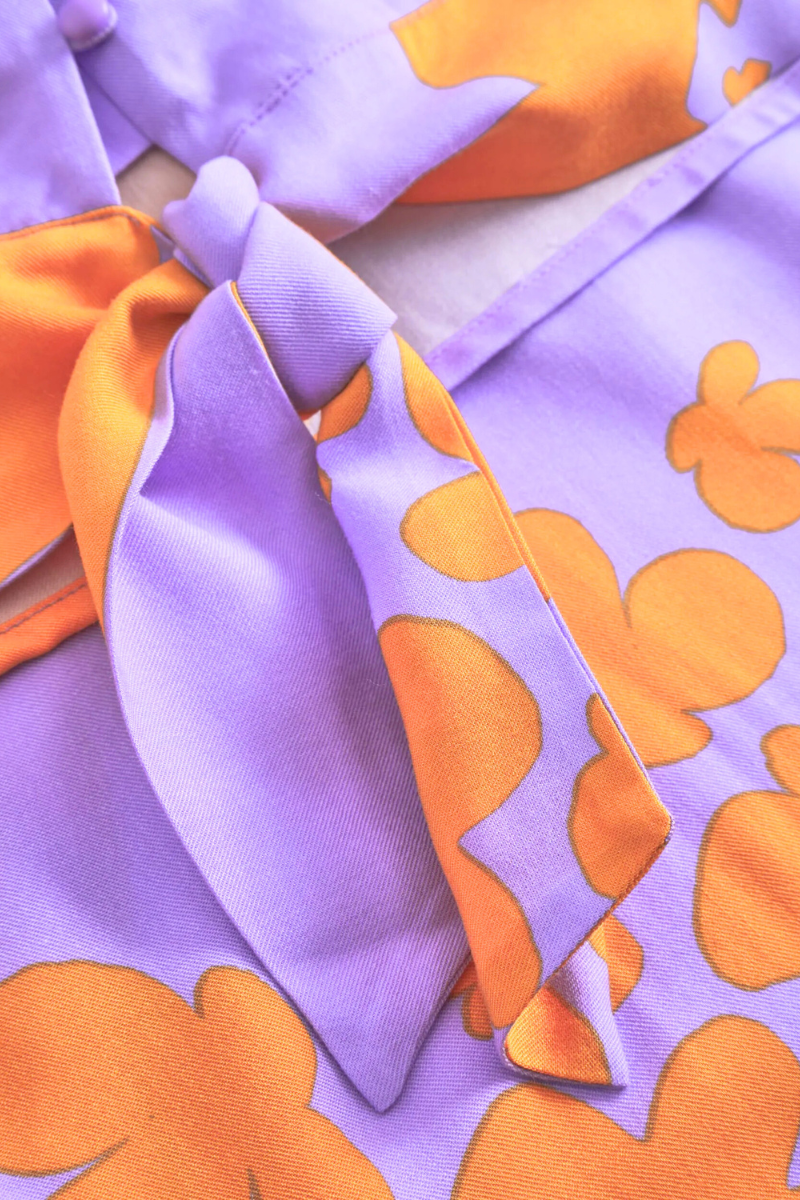Die Bluse von Mademoiselle YéYé verleiht dir durch ihre leichte Twill-Qualität ein luftiges Tragegefühl. Mit lockerer Passform und verkürzter Länge betont sie die Figur auf dezente Weise. Der V-Ausschnitt und die Knopfleiste vorne verleihen der Bluse eine verspielte Note. Besonders hervorstechend sind die angeschnittenen, weiten Ärmel und das Knotenband am Saum, welches den Boho-Flair der 70er Jahre perfekt repräsentiert. Ein absolutes Must-have für den Sommer.
