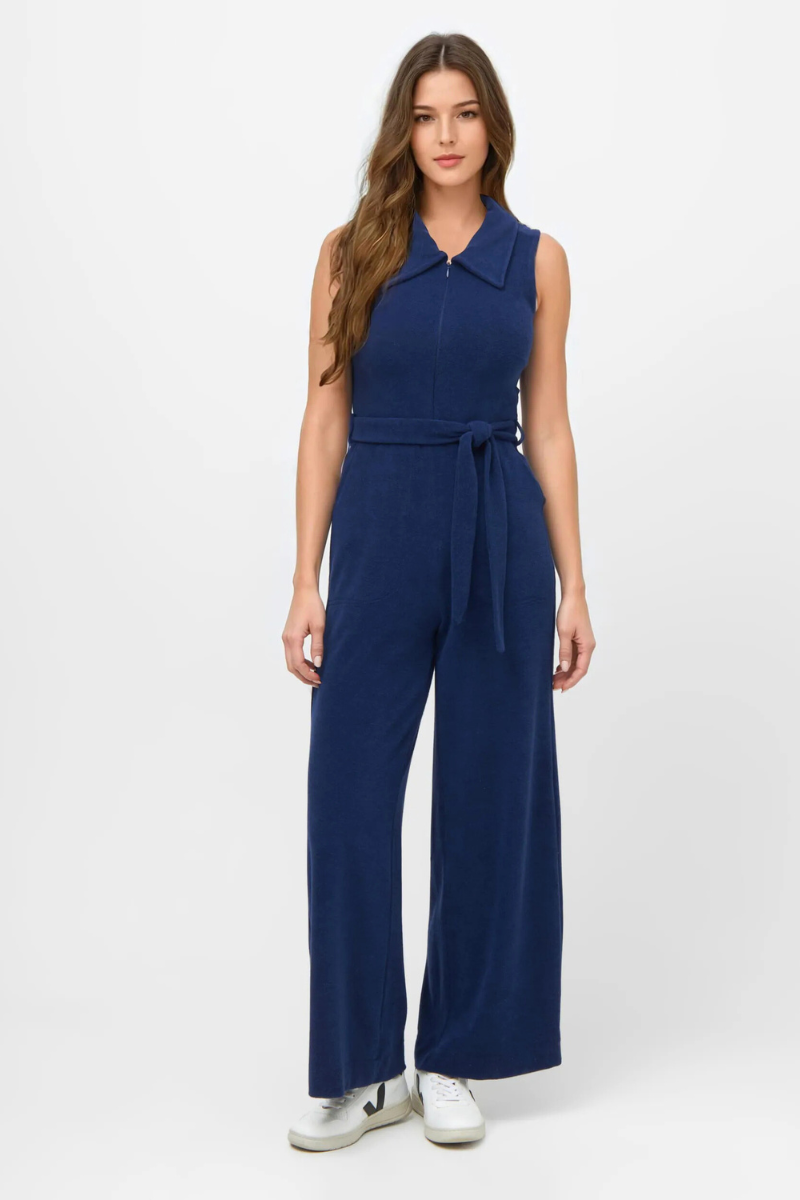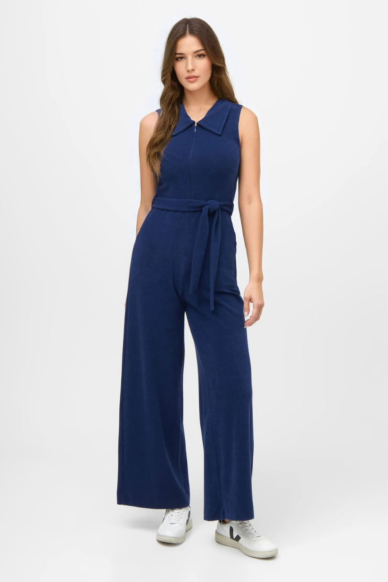 Ein Gefühl von Retro und Lässigkeit trifft auf Komfort und Leichtigkeit. Dieser Jumpsuit von Mademoiselle YéYé aus weichem Frotteematerial bietet eine taillierte Passform und ein weites, gerades Bein. Der Umlegekragen, nahtfeine Reißverschluss und die praktischen Taschen machen ihn zum idealen Begleiter für jeden Tag. Inklusive Gürtelschlaufen und einem separat mitgelieferten Gürtelband.