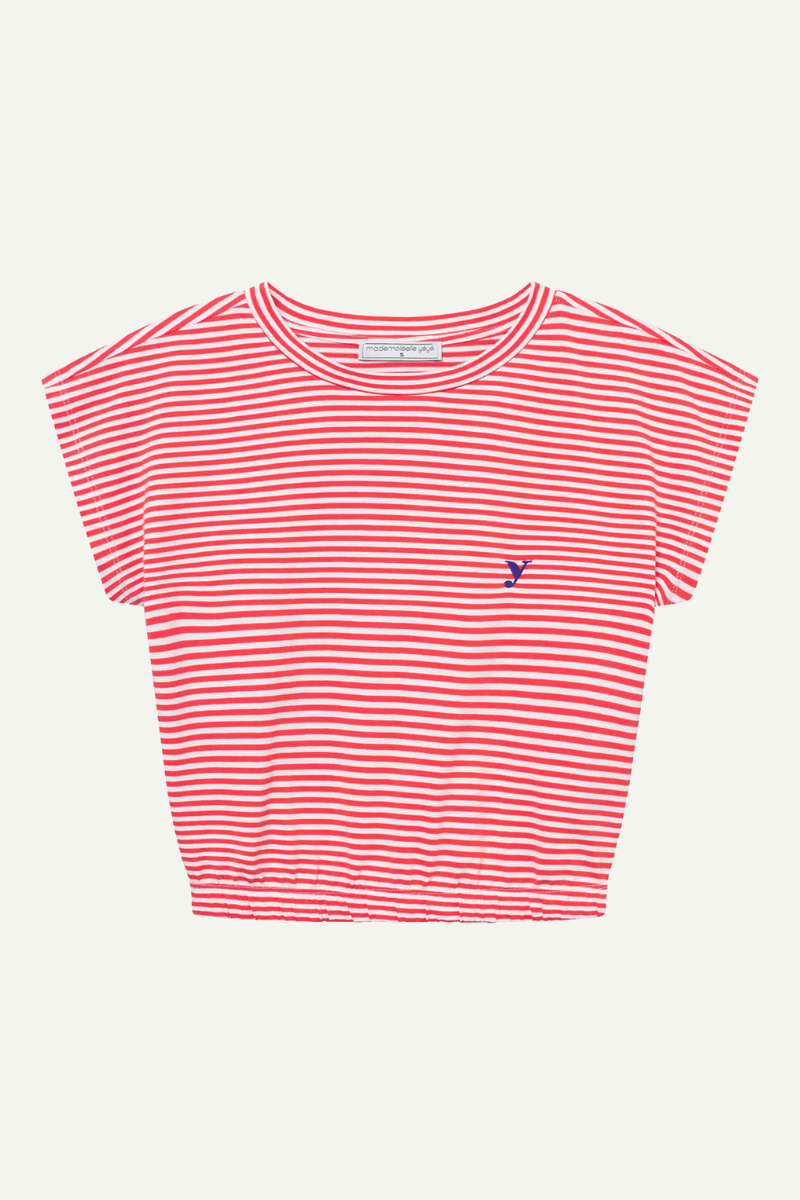 Frühlingsfrish! Das Shirt C'est Chaud von Mademoiselle YéYé ist perfekt für den Sommer geeignet. Aus weichem Jersey und in normaler Passform mit verlängerten Schulternähten für einen lässigen Look. Der elastische Bund und der Rundhalsausschnitt machen es zum Must-Have mit einer Länge bis zum Bauchnabel. Mit GOTS-Zertifizierung und süßem Bruststick.