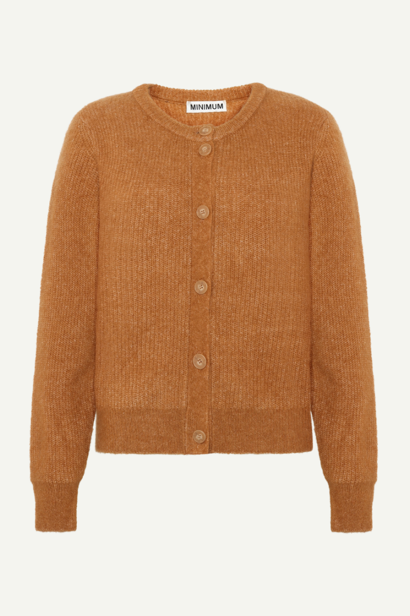 Dieser klassische Strickcardigan von MINIMUM Fashion überzeugt mit einer eleganten Knopfleiste und dem warmen, weichen Mohairwoll-Material. Die Strickjacke "Kora Cashew" hält dich an kühlen Tagen angenehm warm und verleiht deinem Outfit zugleich einen zeitlosen, stilvollen Look. Ideal für vielseitiges Kombinieren und besonderen Komfort im Alltag.