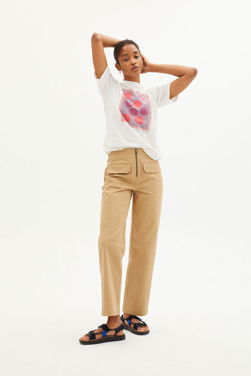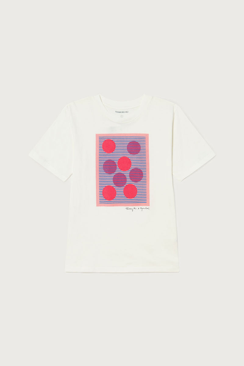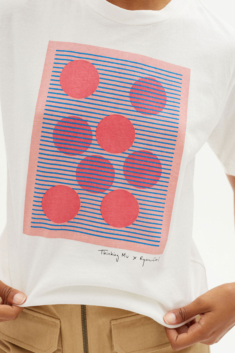 Weisses T-Shirt aus Bio-Baumwolle mit kurzen Ärmeln, Rundhalsausschnitt Und Print auf der Vorderseite in Zusammenarbeit mit dem Künstler Ryan Carl.