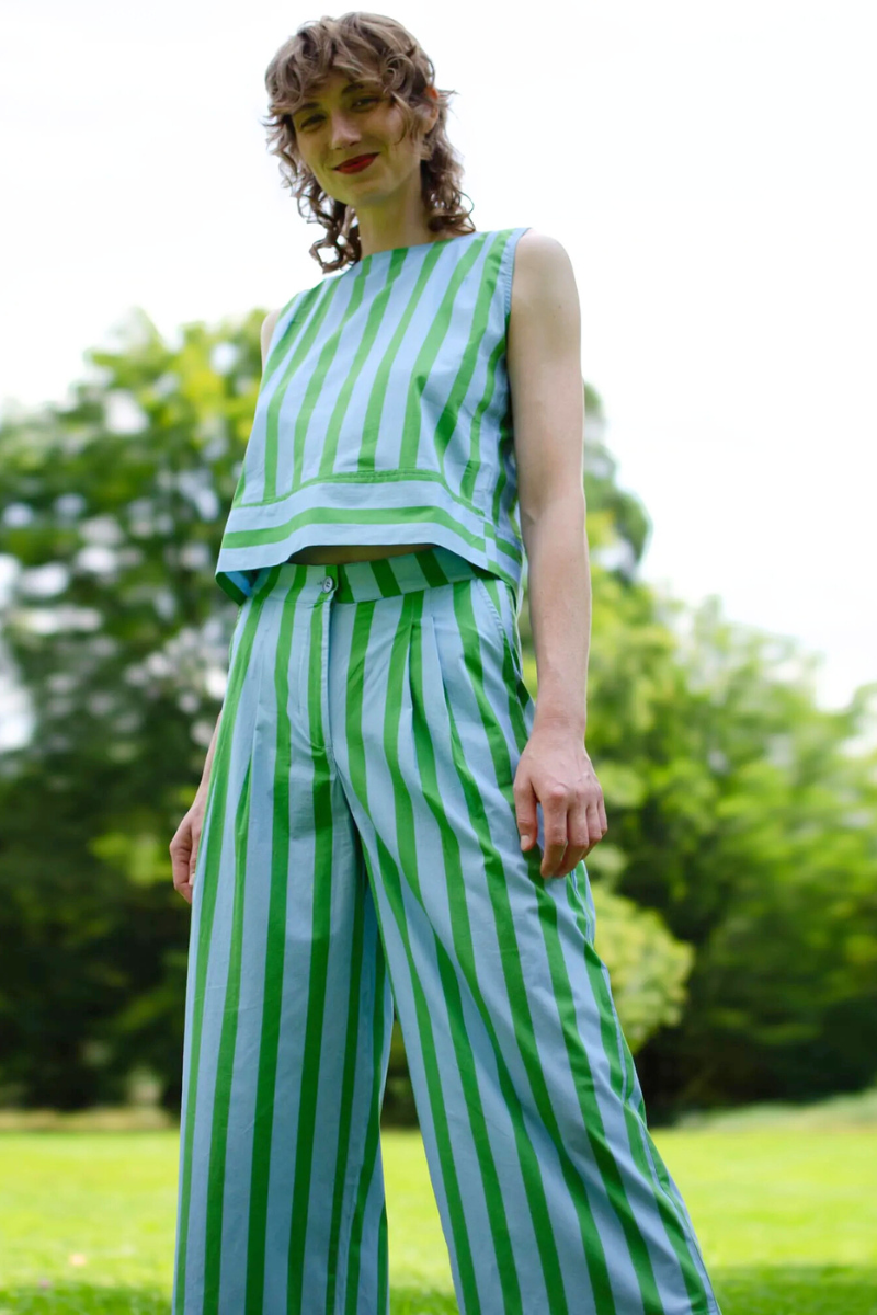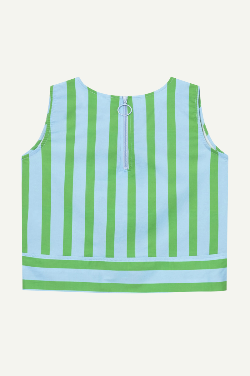 Genieße den Sommer in Leichtigkeit mit dem Top von Mademoiselle YéYé aus Baumwoll-Popeline. Die gerade Silhouette und der weite Saum bieten einen bequemen Sitz, während der Reißverschluss mit rundem Puller hinten ein einfaches An- und Ausziehen ermöglicht. Der breite Saum mit gedrehtem Streifen verleiht dem Top eine frische Note und kann perfekt zur passenden Culotte oder Denim kombiniert werden.