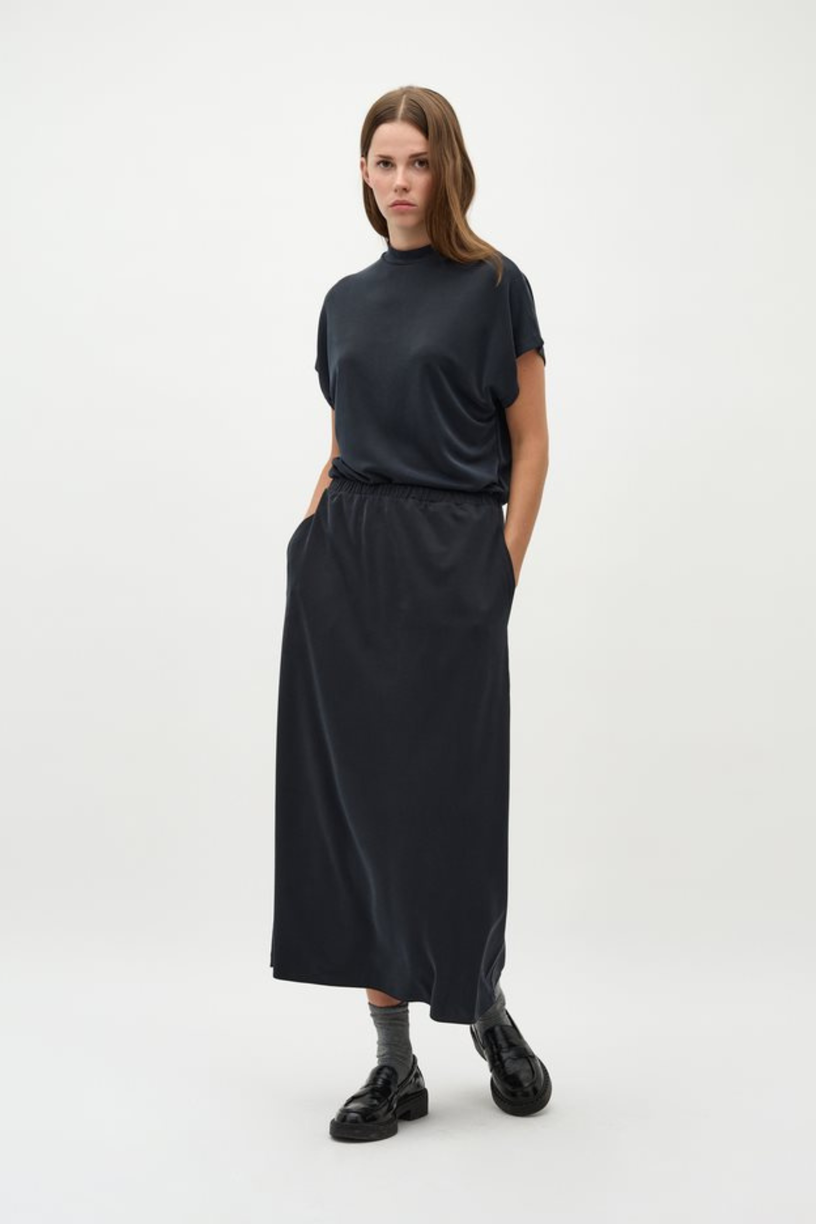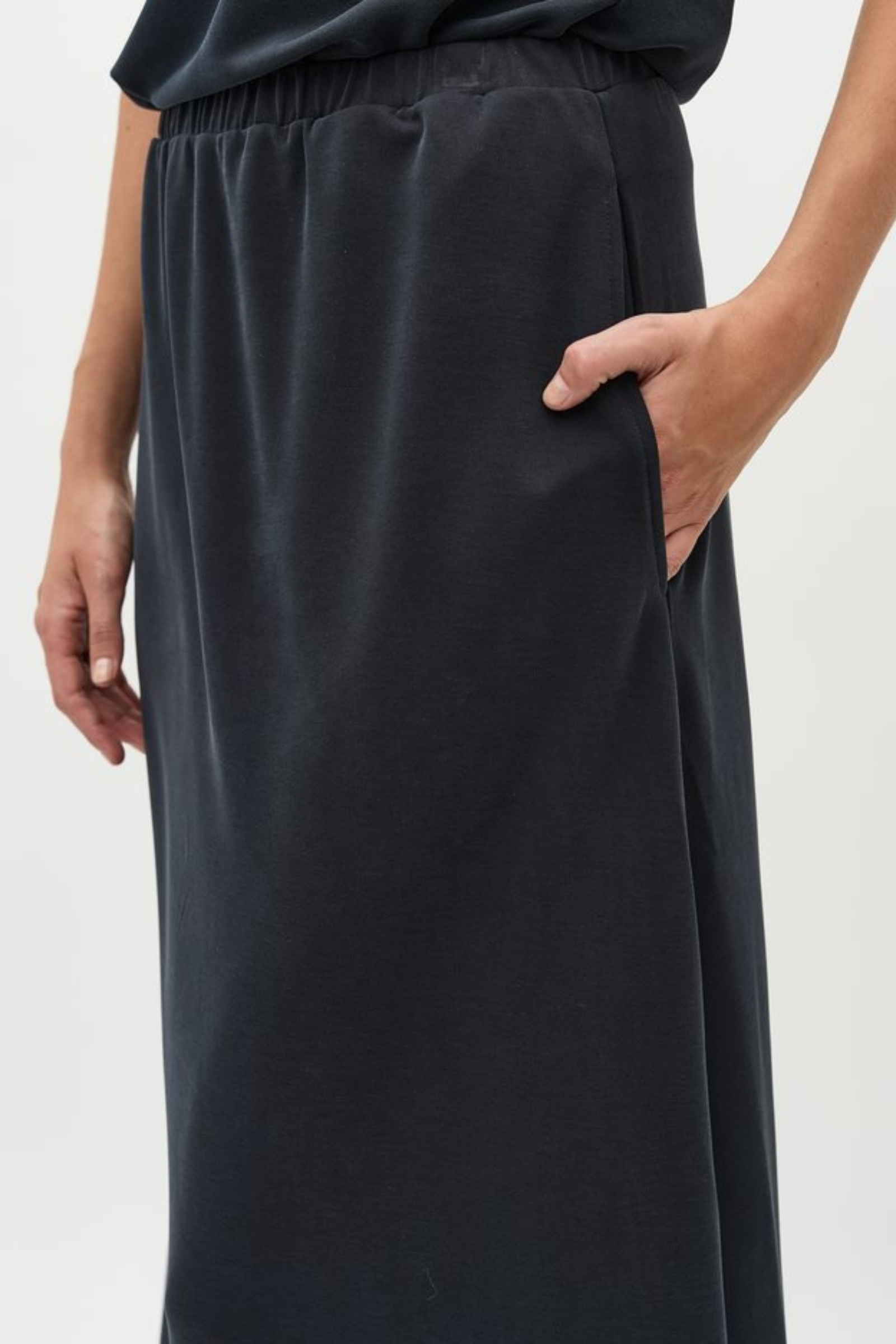 Lockerer Rock von Mbym in schwarz mit Gummizug in der Taille und Seitentaschen