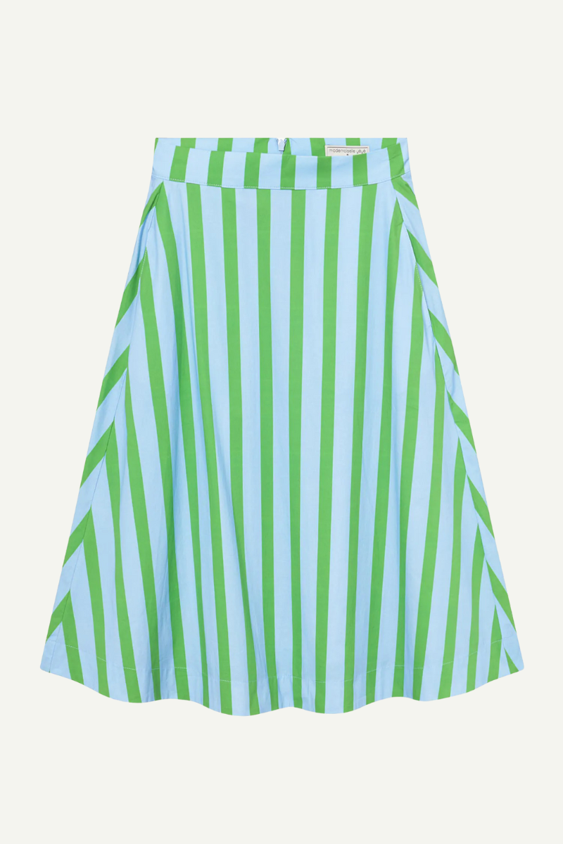 Der Rock von Mademoiselle YéYé aus leichtem Baumwoll-Popeline bietet eine normale Passform und einen ausgestellten Saum. Mit einer hohen Leibhöhe und nahtlosem Reißverschluss in der hinteren Mitte ist er bequem und praktisch. Die seitlichen Eingriffstaschen machen ihn perfekt für alle, die feminine Styles lieben.