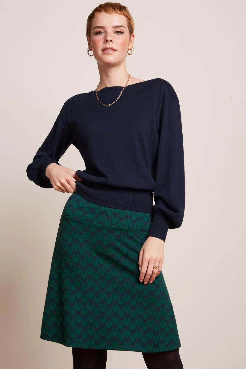 Der Rock Border Duffy in Evening Blue verleiht jedem Outfit das gewisse Etwas. Mit A-Linie-Schnitt und bequemem Gummizugbund bietet er nicht nur bequemes Tragegefühl, sondern auch Stretchkomfort. Der trendige Jacquard-Jersey und der schicke Grafikprint machen ihn zum Hingucker.