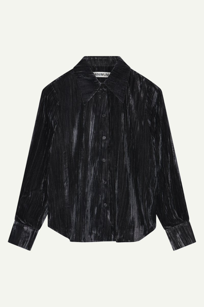 Die glanvolle Bluse von MINIMUM verbindet zeitlosen Stil mit außergewöhnlichem Tragekomfort. Aus weichem Velours gefertigt, bietet es eine dezente Textur und angenehme Haptik. Der klassische Kragen und die langen Ärmel machen das Shirt vielseitig kombinierbar – ideal für entspannte Freizeitlooks oder elegante Casual-Outfits.