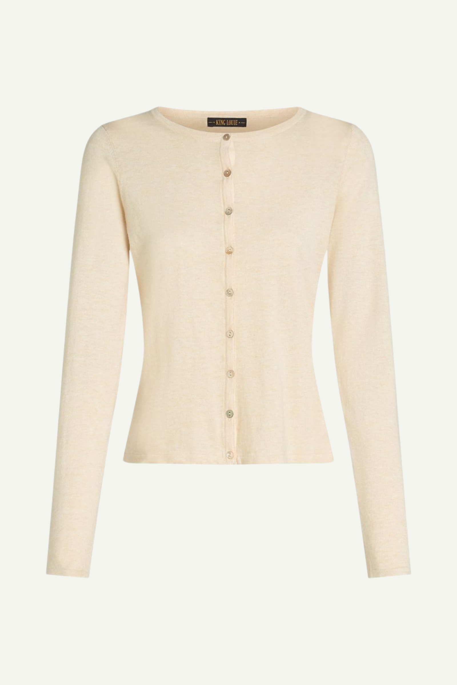 Kuschelige Strickjacke von King Louie BCI-Baumwolle und Seide. Mit taillierter Passform, rundem Halsausschnitt und durchgehender Knopfleiste für einen eleganten Look. Die langen Ärmel und das super weiche Modal-Material bieten höchsten Tragekomfort und Flexibilität. Ein Must-Have für jeden Kleiderschrank!